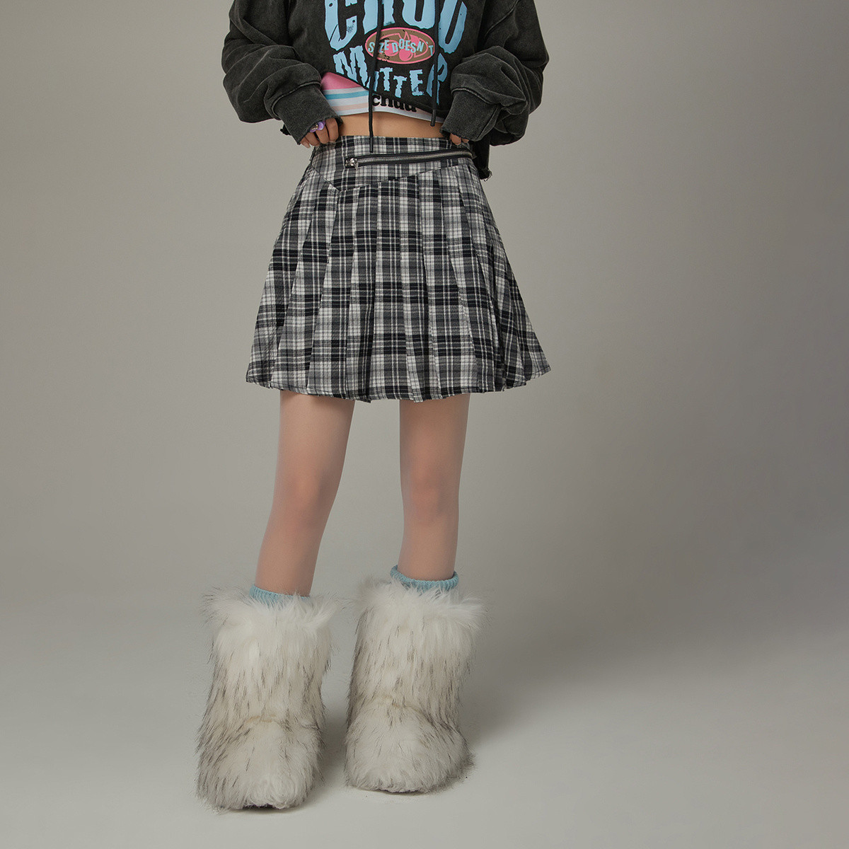 CHUU格子半身裙女春秋设计感撞色辣妹百褶短裙子 344659