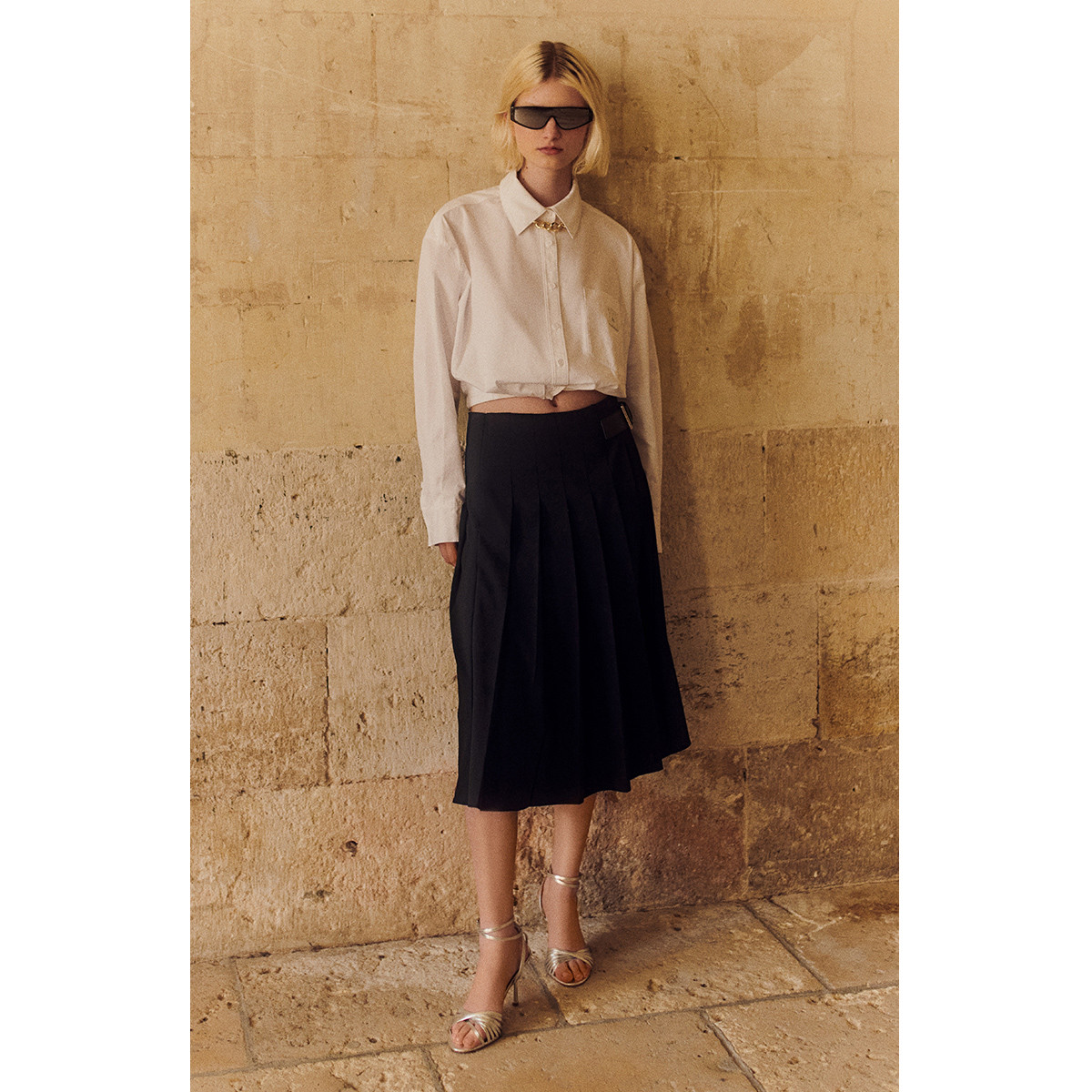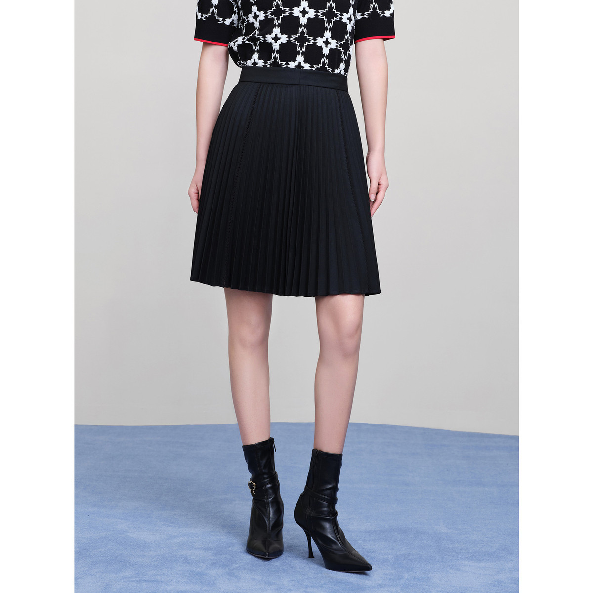 黑标系列 春装饰袢通勤学院风中长a字褶裙半身裙 249807