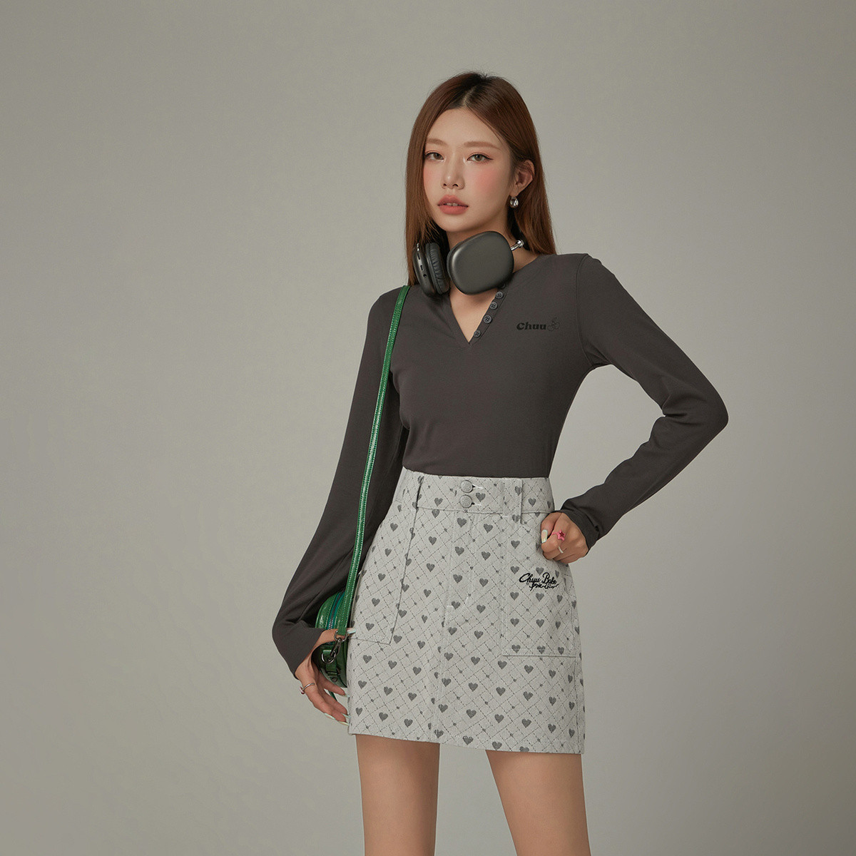 爱心格子半身裙女春秋字母刺绣高腰a字包臀短裙子 174547