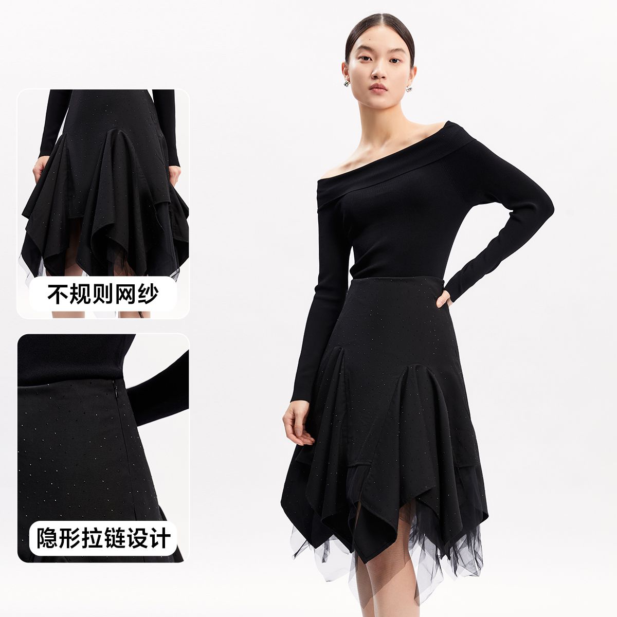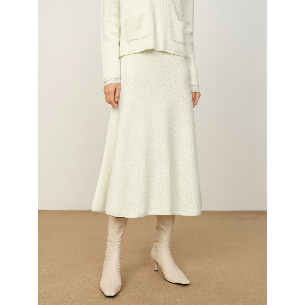 玖姿旗下安娜蔻系列优雅松紧针织半裙毛衫长款腰裙伞裙女冬季 886540