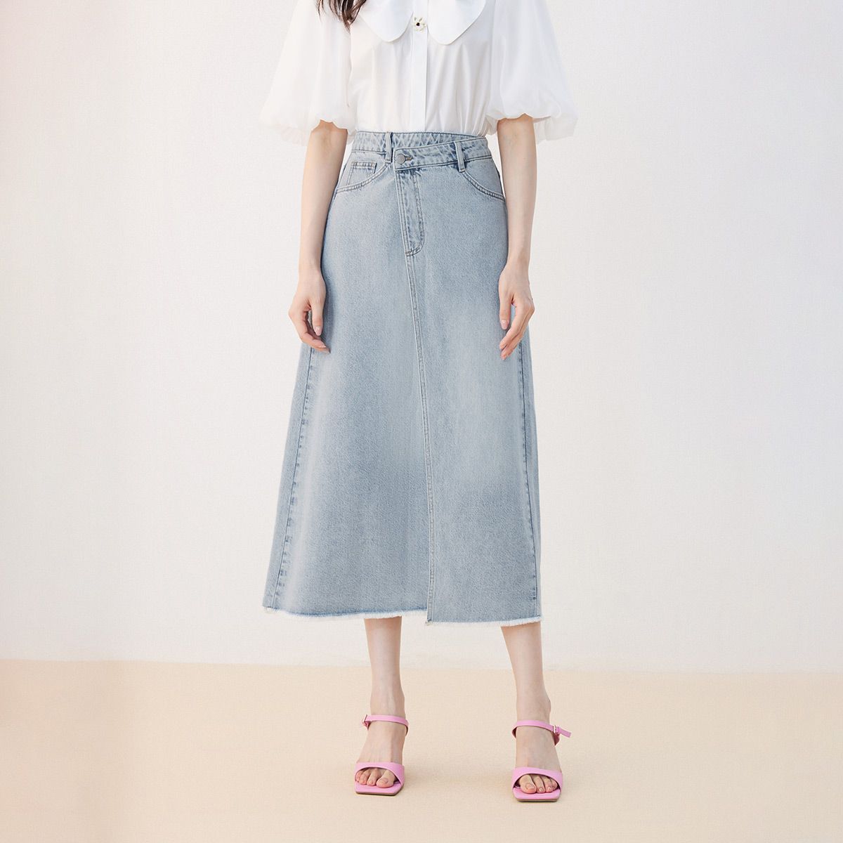 【不对称设计感】专柜款高腰街头风百搭休闲牛仔半身裙 913745