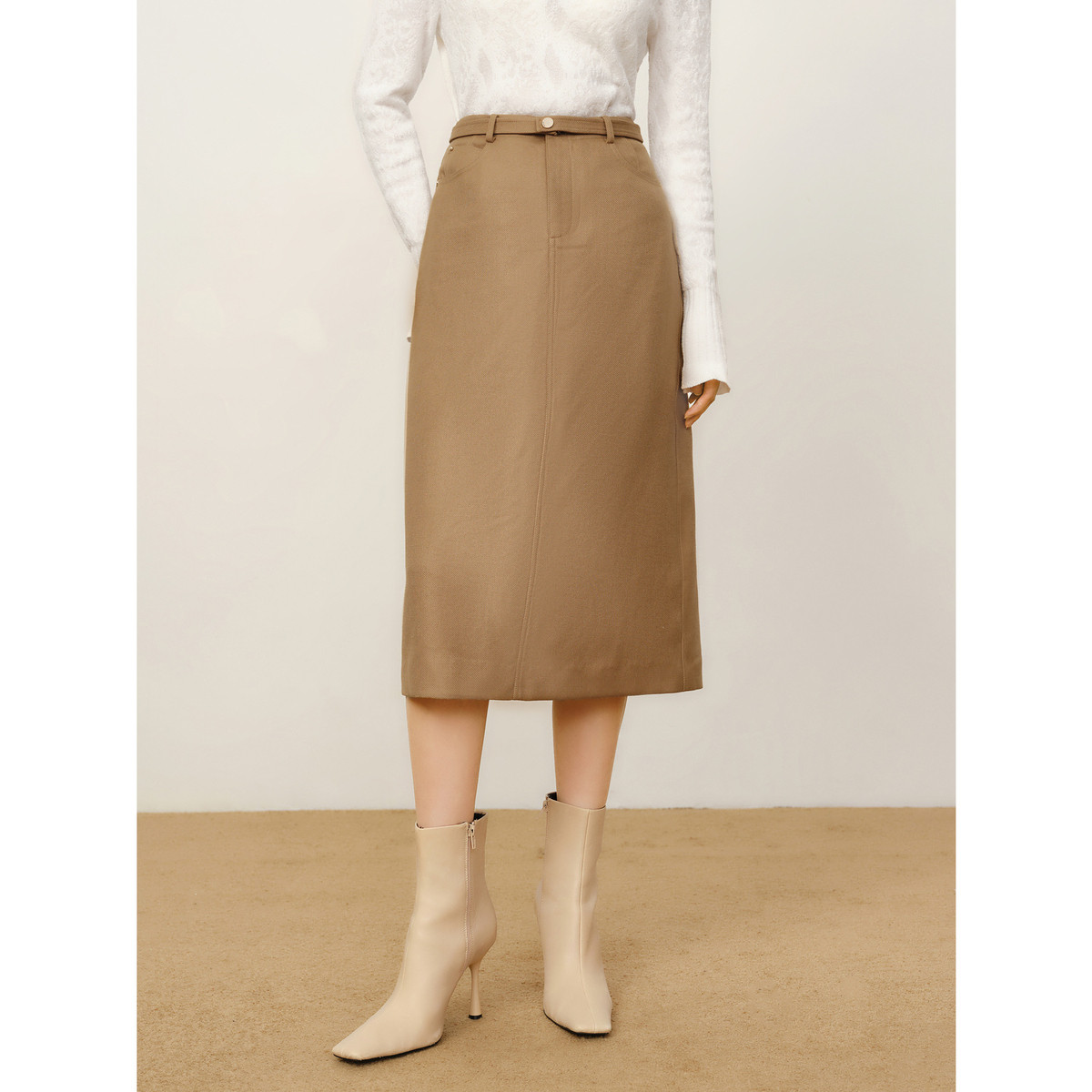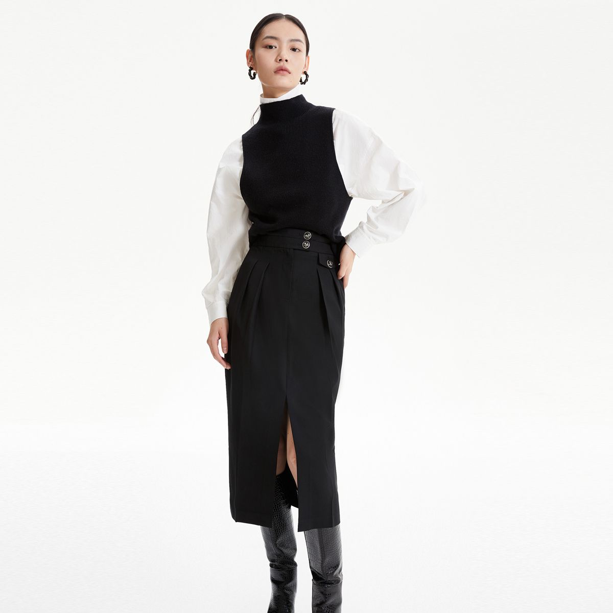 玖姿旗下安娜蔻系列摩登优雅气质纯色基础半身裙女冬季 693708