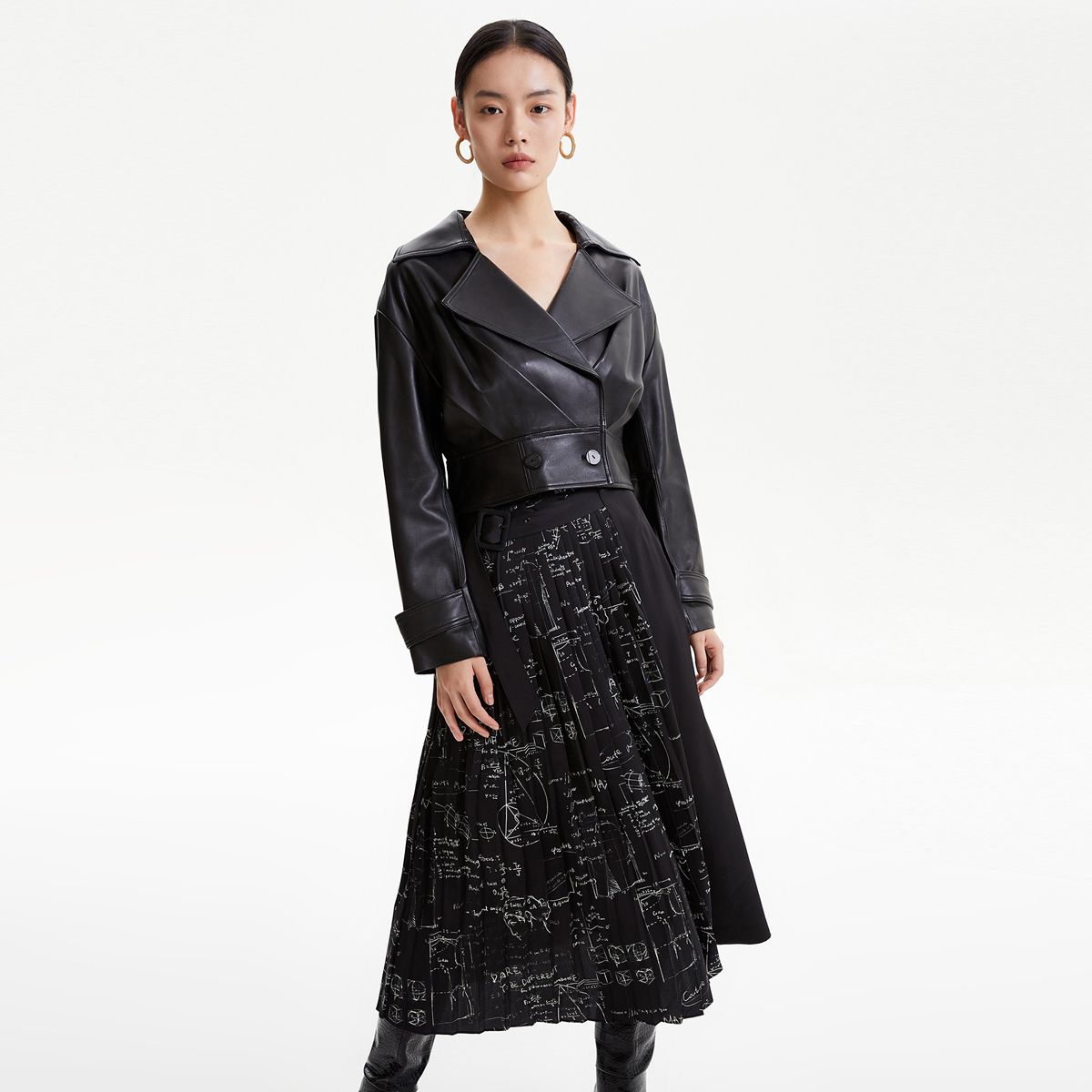 【美拉德】春秋专柜款拼接pu拼接百褶短半裙 720017