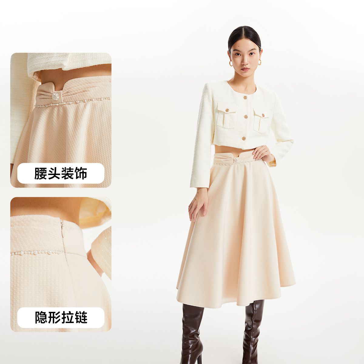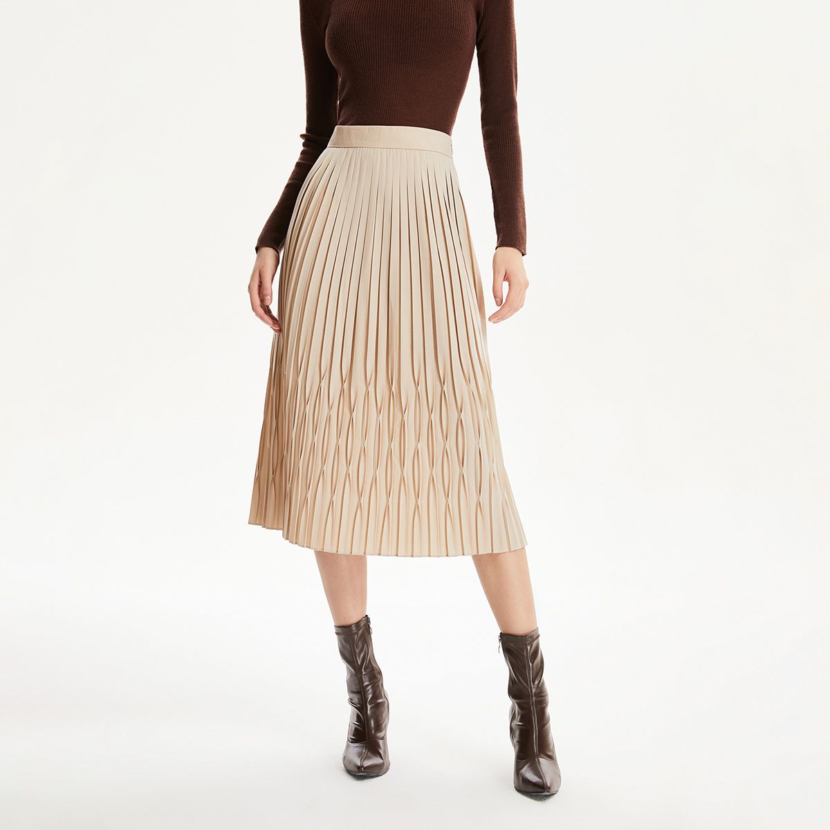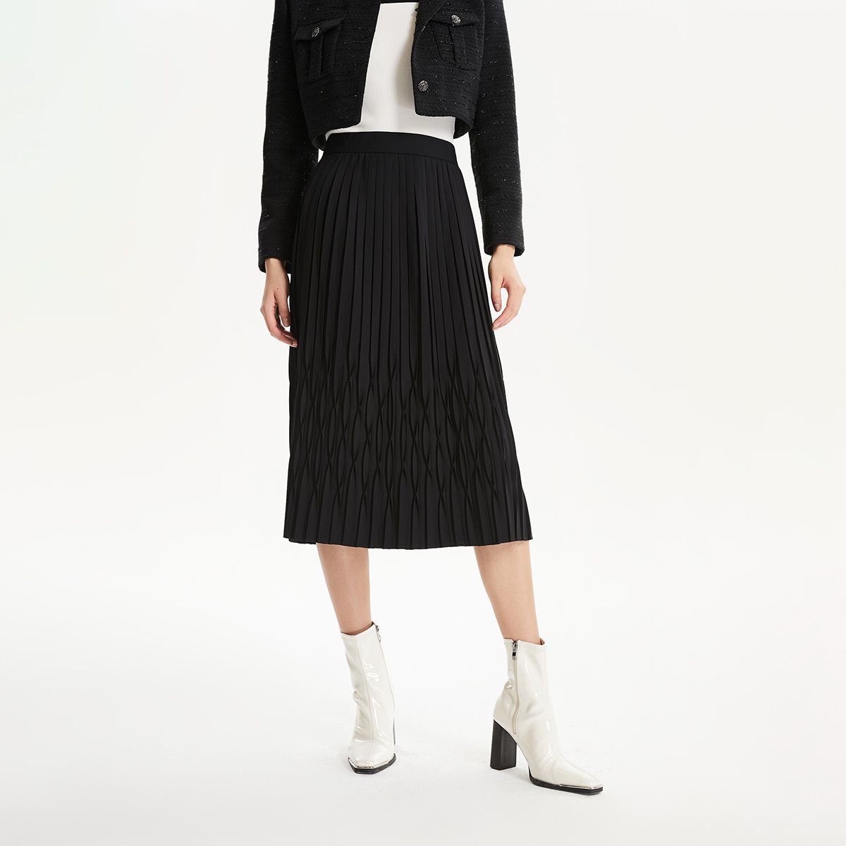 【春秋专柜款】高腰A摆设计感百褶简约通勤百搭半身裙 685649