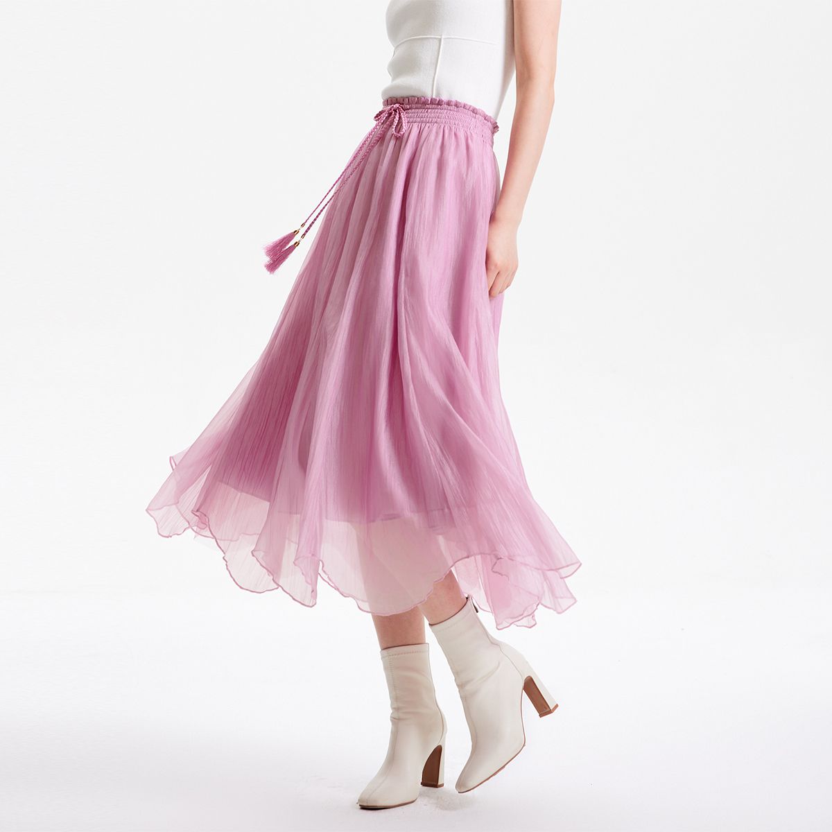 半身裙【专柜】春夏优雅甜美纱裙纯色高腰显瘦气质百搭时尚 598417