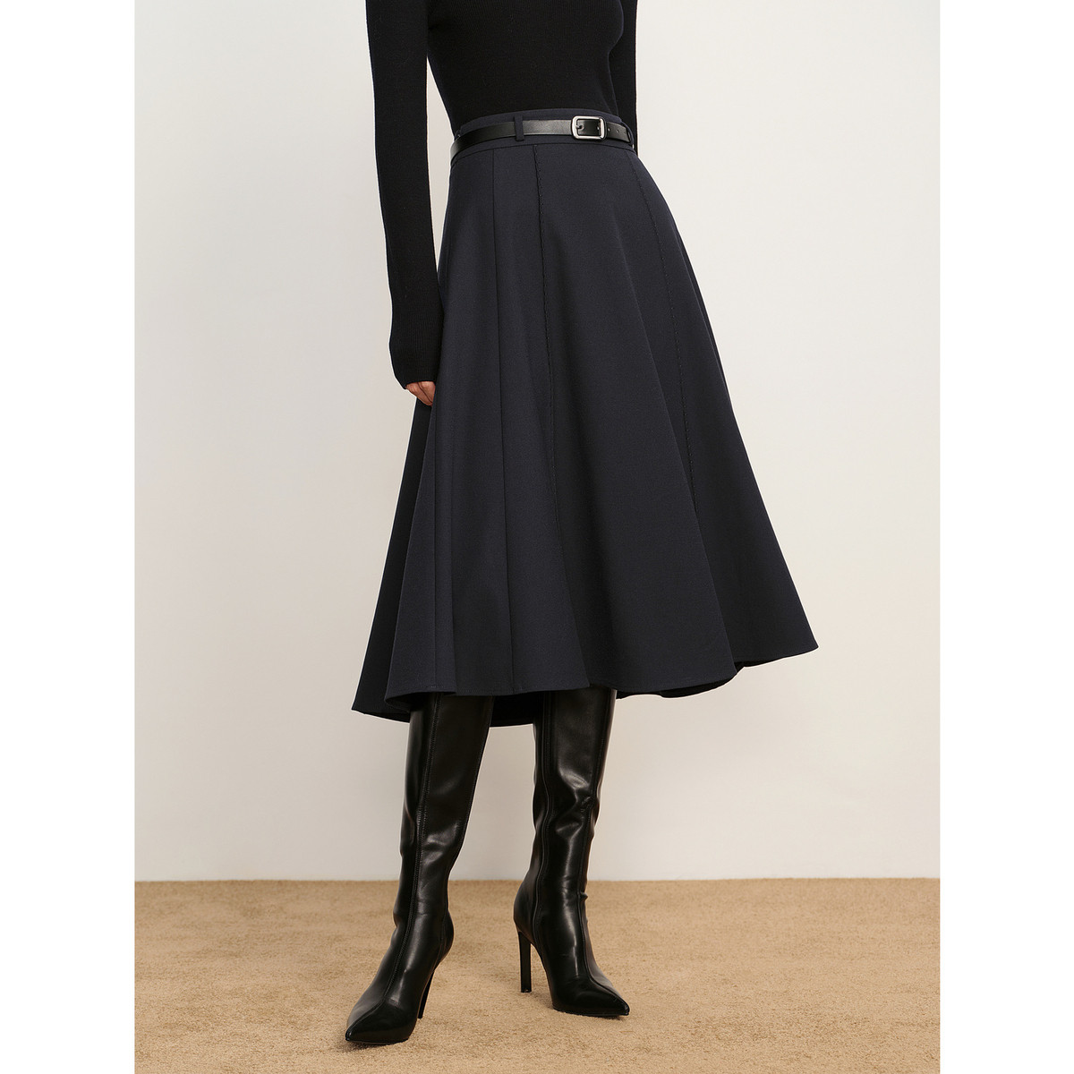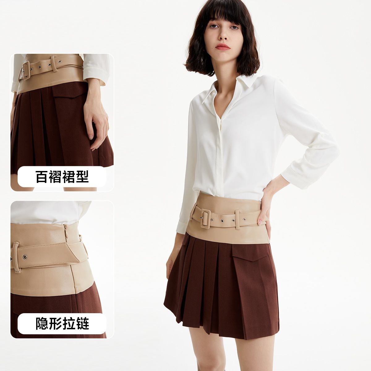 【春秋专柜款】高腰A摆设计感百褶简约通勤百搭半身裙 689745