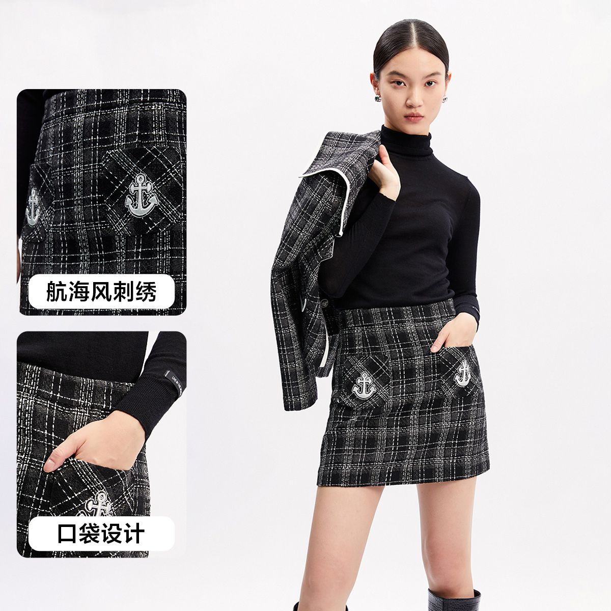 商场同款JZ玖姿复古格纹开衩裙女装秋半身裙JWCQ20105 324364
