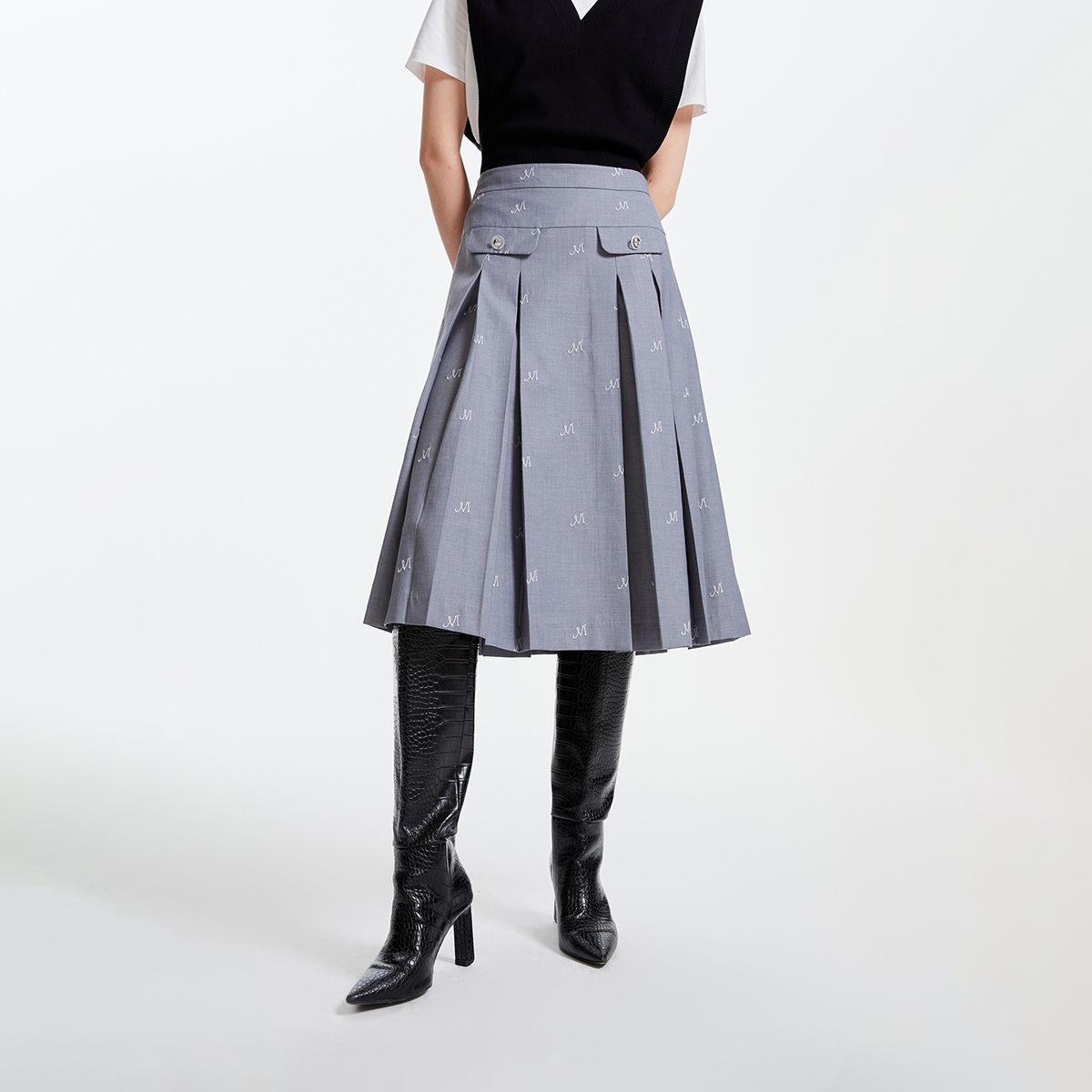 【春夏专柜款】字母刺绣A摆百褶裙休闲学院风半身裙气质百搭时尚 365329