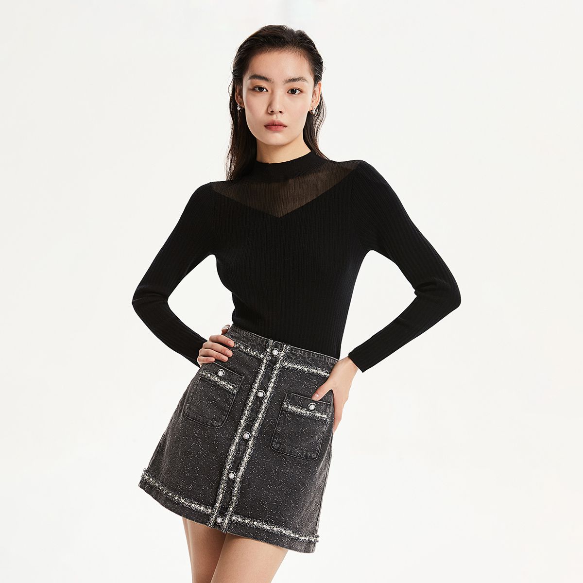【春夏专柜款】高腰A摆牛仔短裙优雅小香风半身裙气质百搭时尚 309201