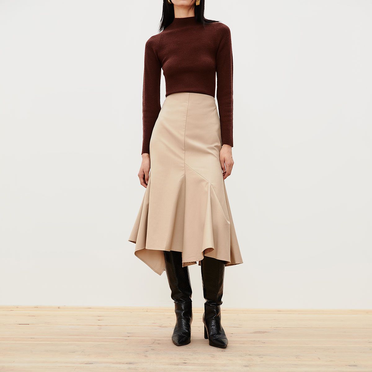 【商场同款】波浪下摆不规则设计半截裙高腰显瘦修身A字短裙女 751702