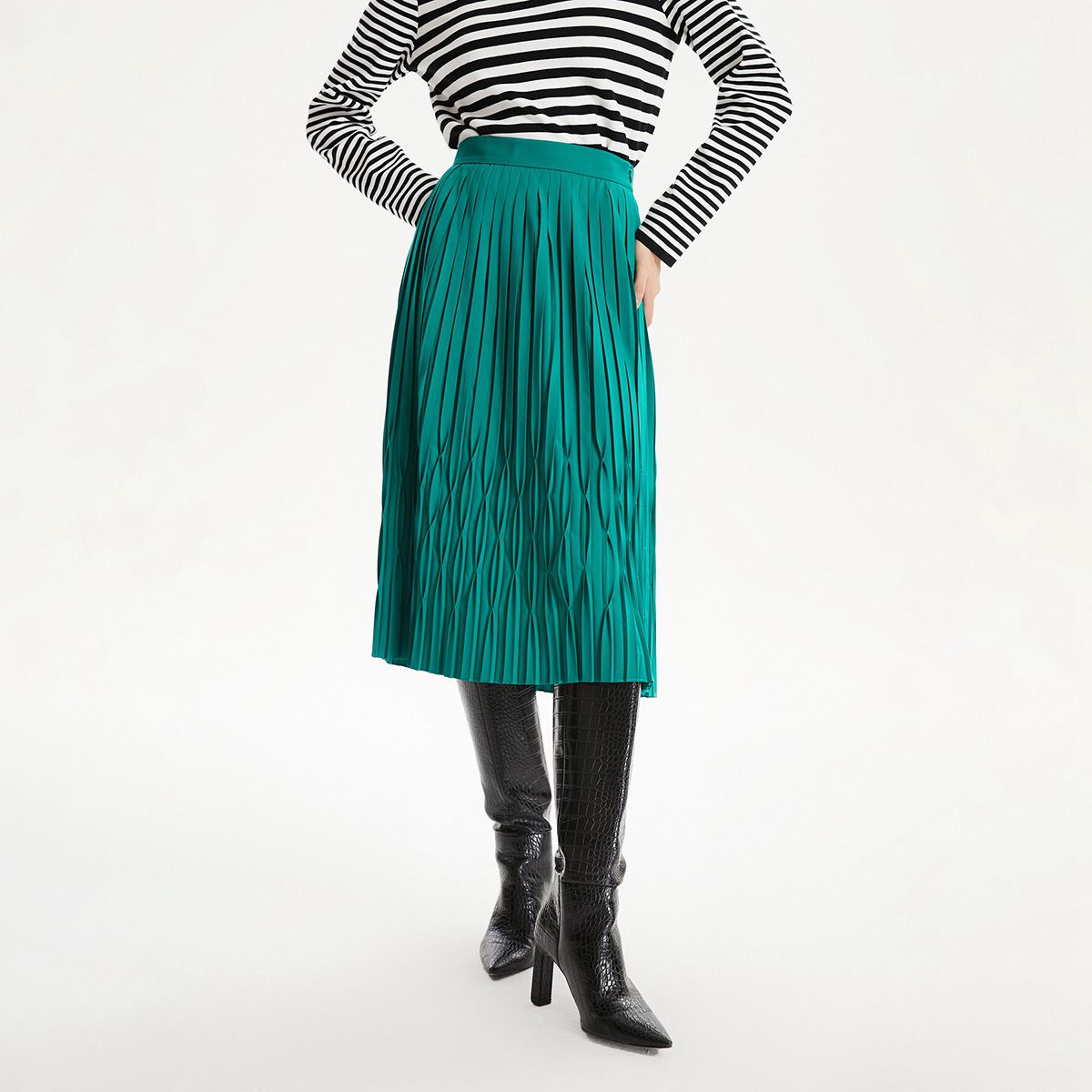 【春秋专柜款】高腰A摆设计感百褶简约通勤百搭半身裙 902737