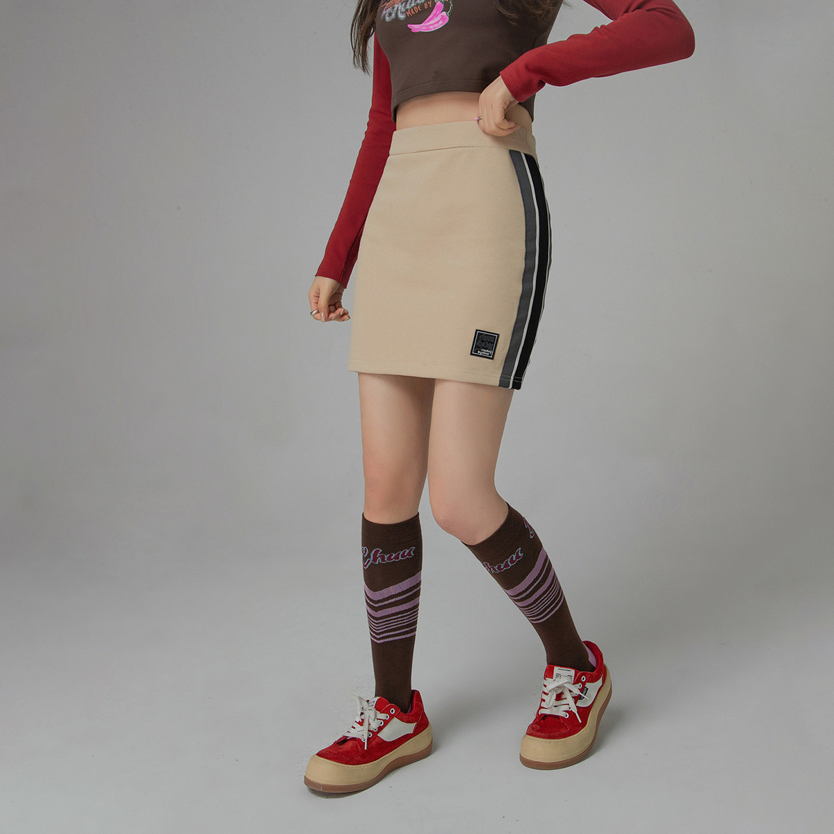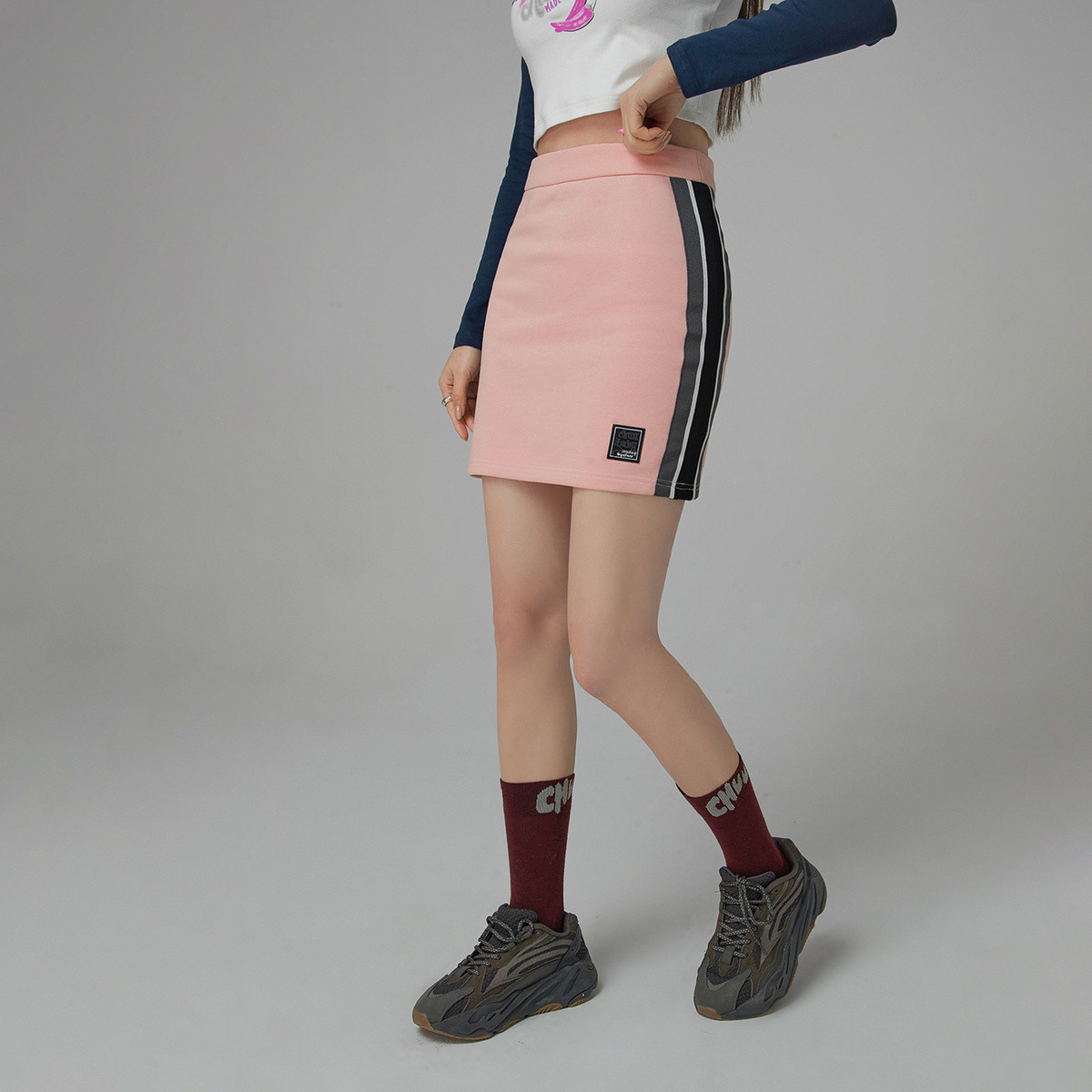 高腰拉链半身裙女春秋运动风简约条纹百搭显瘦短裙 362067