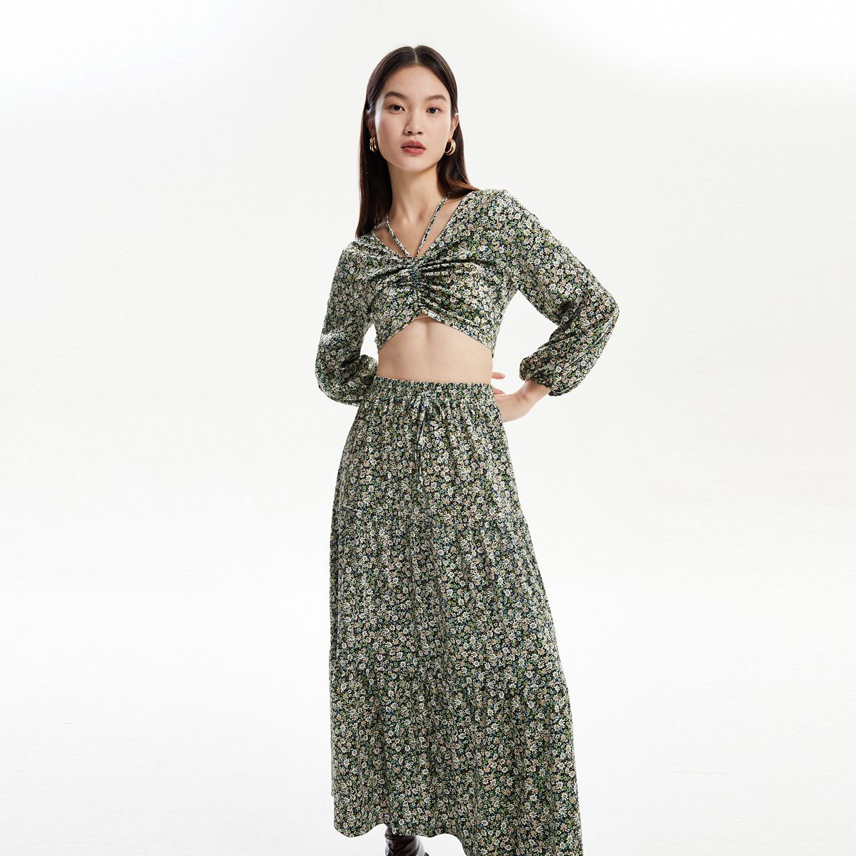 【春秋专柜款】甜美气质碎花百搭度假半身长裙 053905