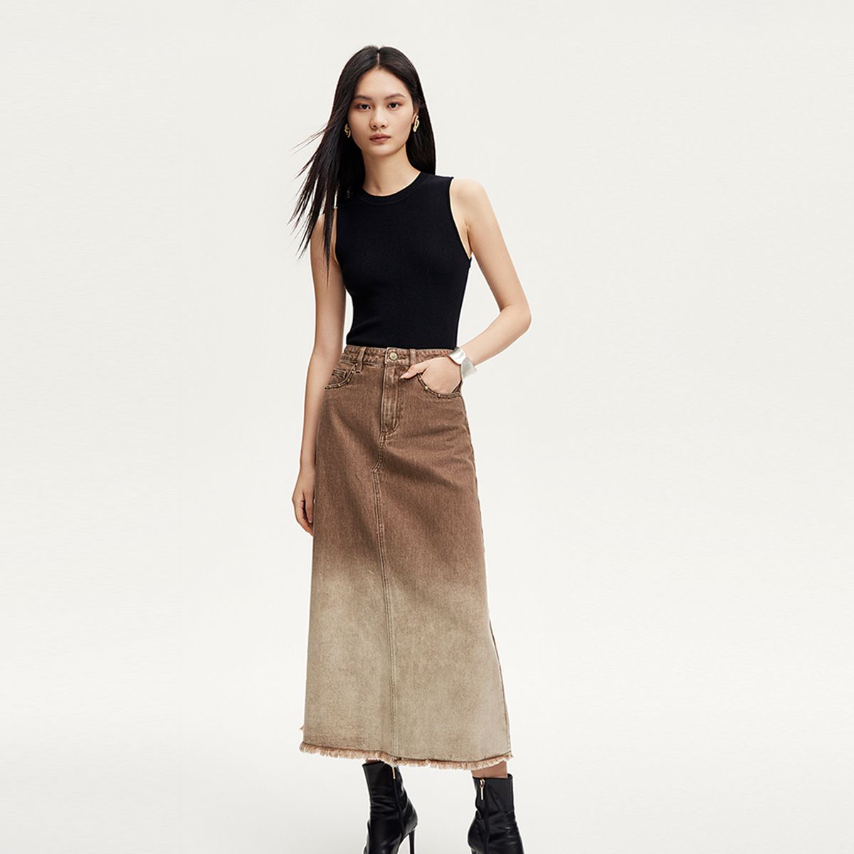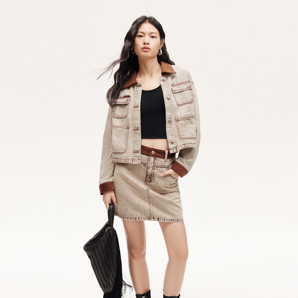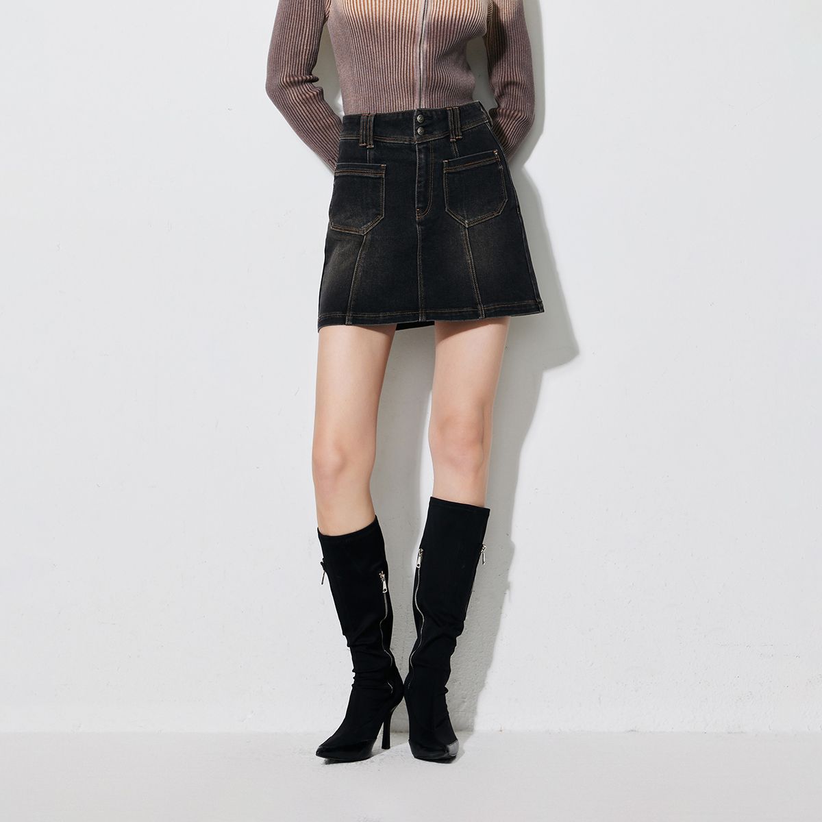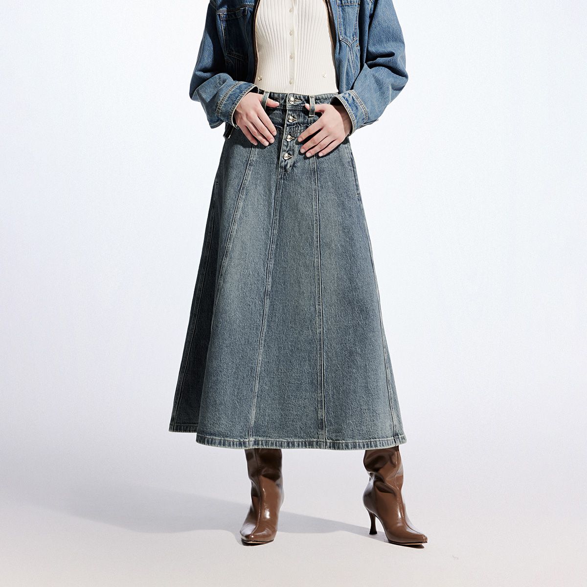 半身裙女A版铆钉毛边水洗复古通勤 338449