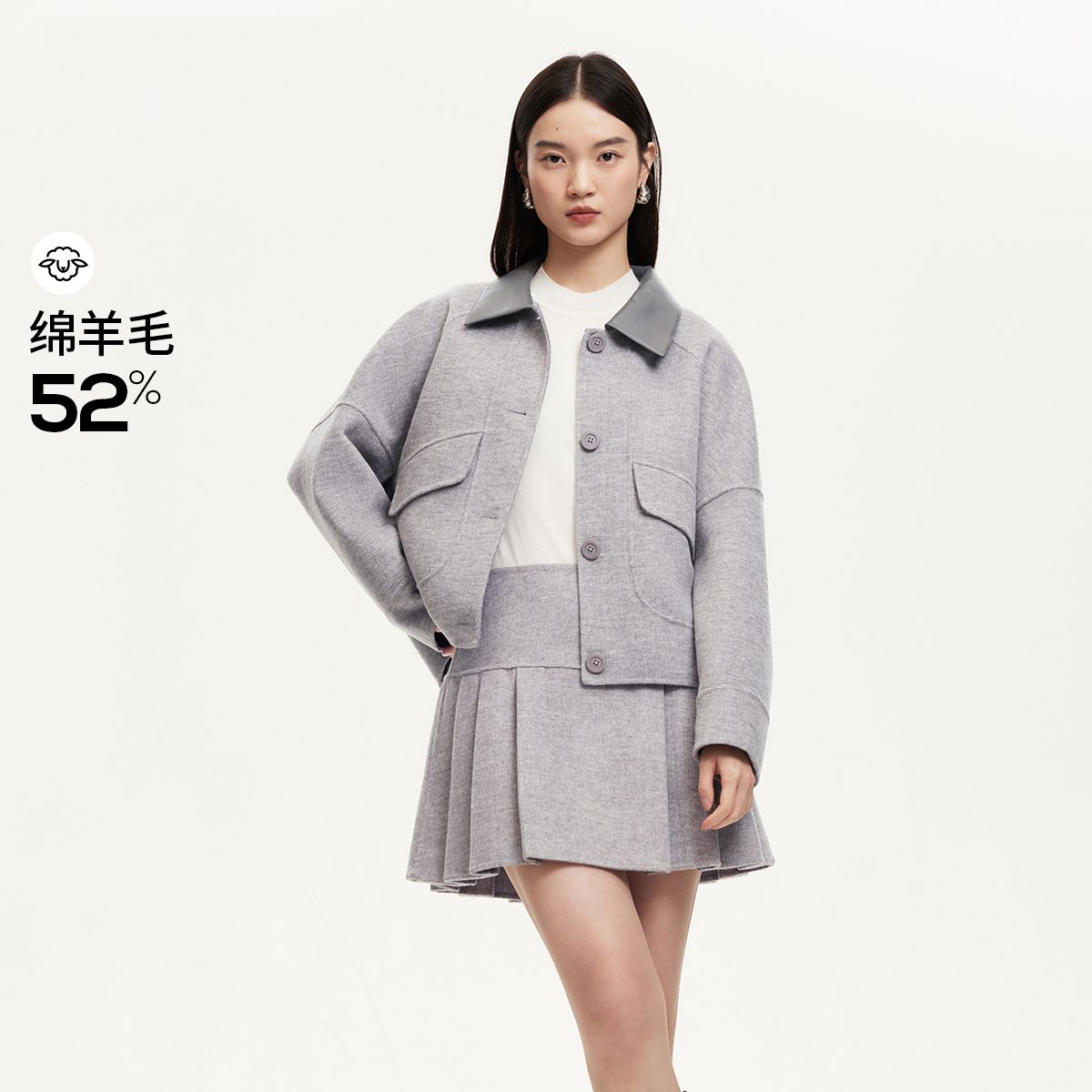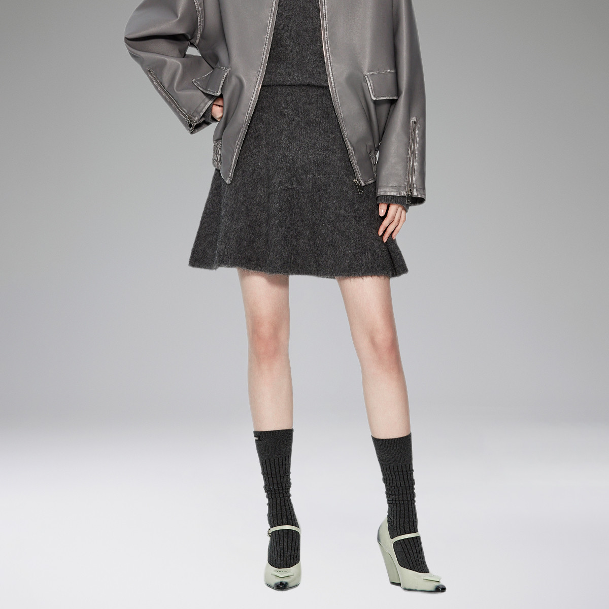春装 荷叶边高腰短裙进口羊驼毛毛织半身裙 970575