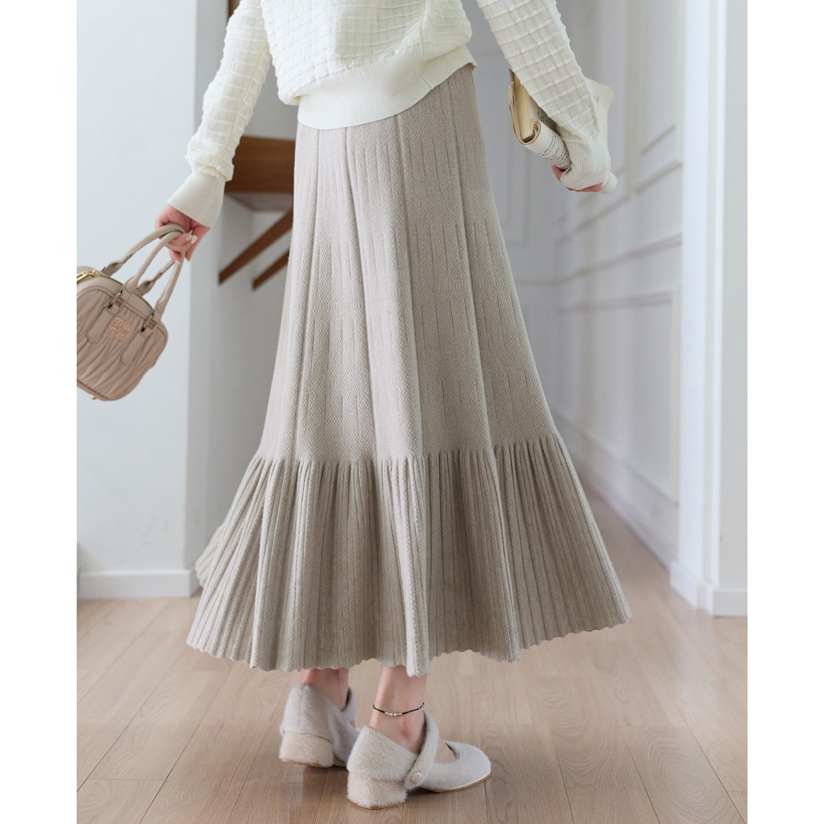 【早八优雅赋能】冬季法式静奢A字鱼尾拼接轻熟遮肉半身裙女长款 215873