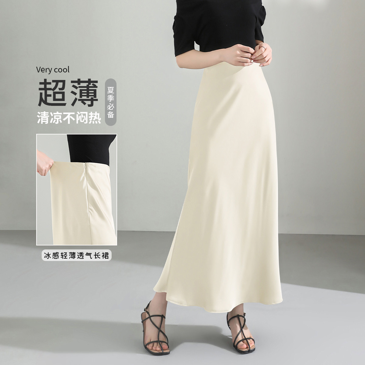 {含仿醋酸}夏季透气薄款裙子仿醋酸质感半身裙缎面气质中长裙 337823