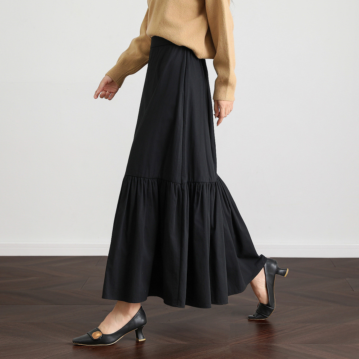 【A字荷叶摆裙】春秋针织大摆荷叶边半身裙高腰显瘦百搭A字长裙 359297