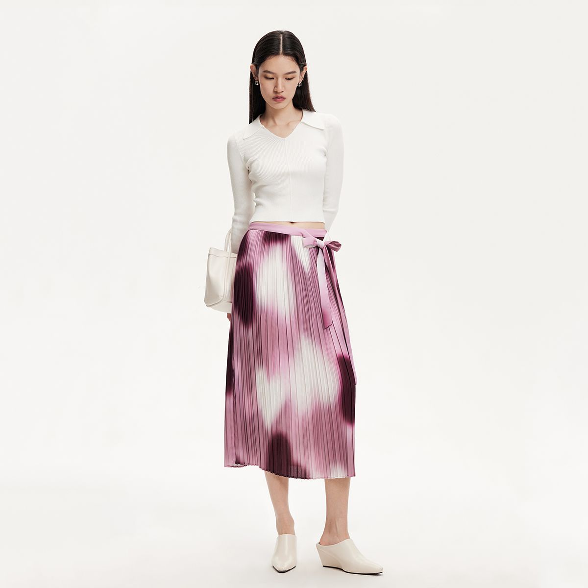 半身裙女扎染系带A摆百褶长裙优雅气质通勤 303633