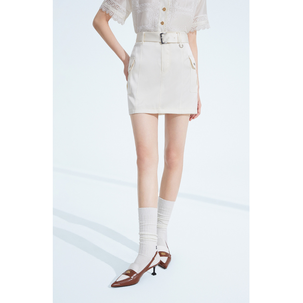 春季配腰带短裙显瘦小个子工装半身裙 660751