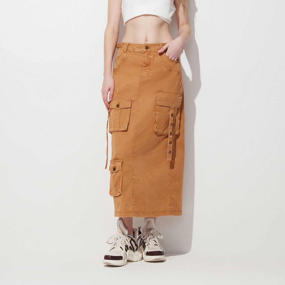 【工装废土风】夏季磨白开衩中腰长款半身裙女 655642