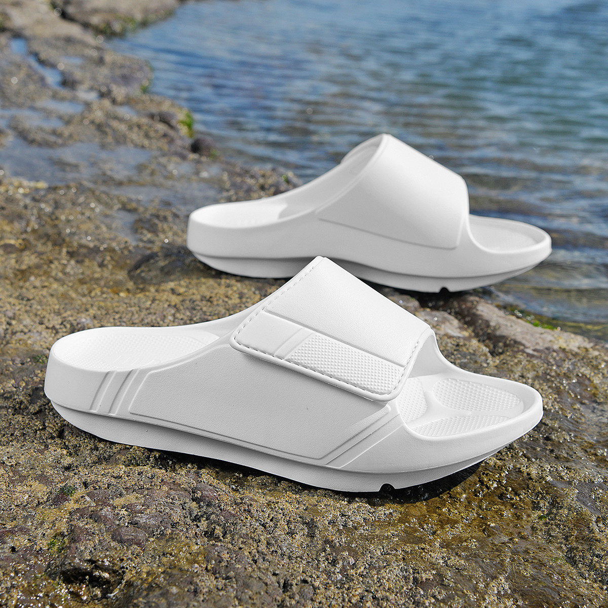 【魔术贴粘扣】夏季一字拖腰果花可调节松紧静音男拖鞋 020702