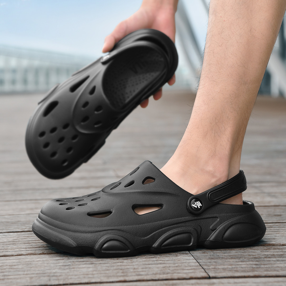 男士凉鞋夏季外穿沙滩凉鞋踩屎感青少高级感洞洞鞋男式凉拖鞋 744399