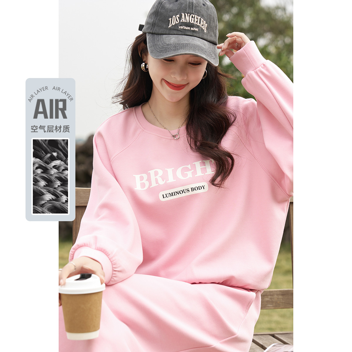 【甜美系少女】春秋字母休闲半裙两件套女温柔学院减龄卫衣套装女 355393