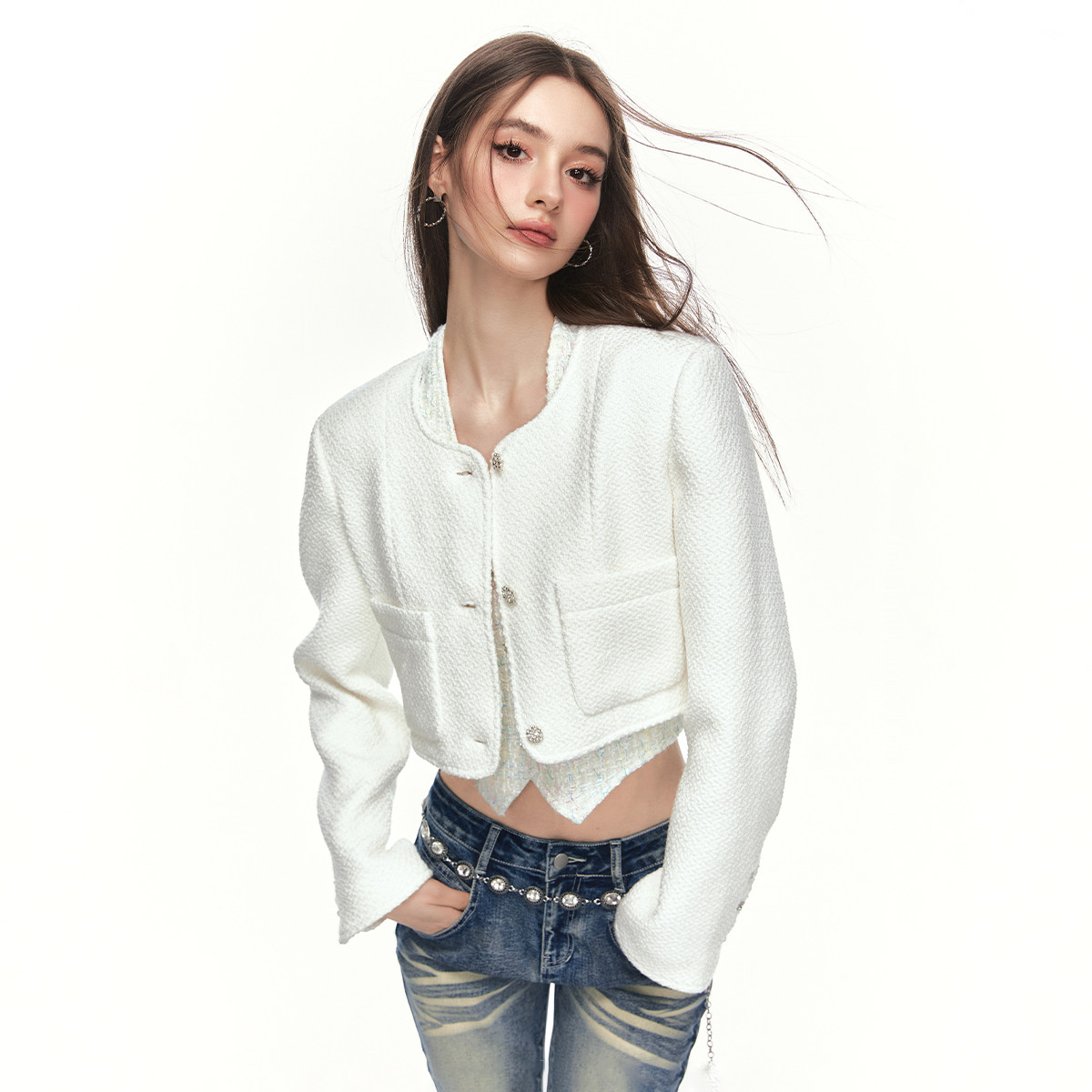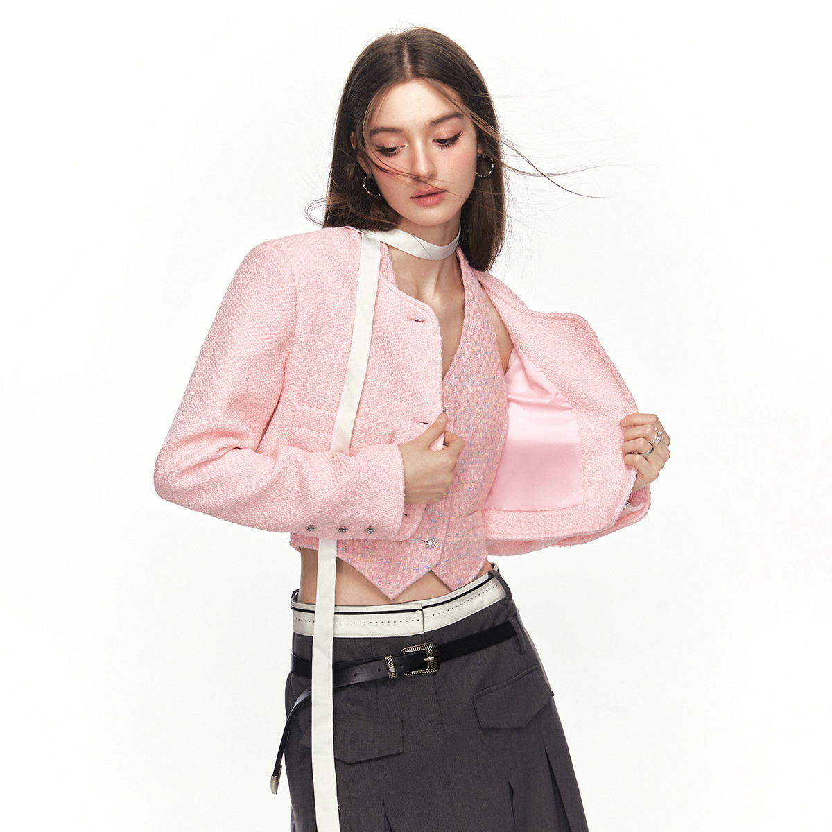 24春季千金小香风外套套装女优雅气质高级感短款上衣两件套 549524