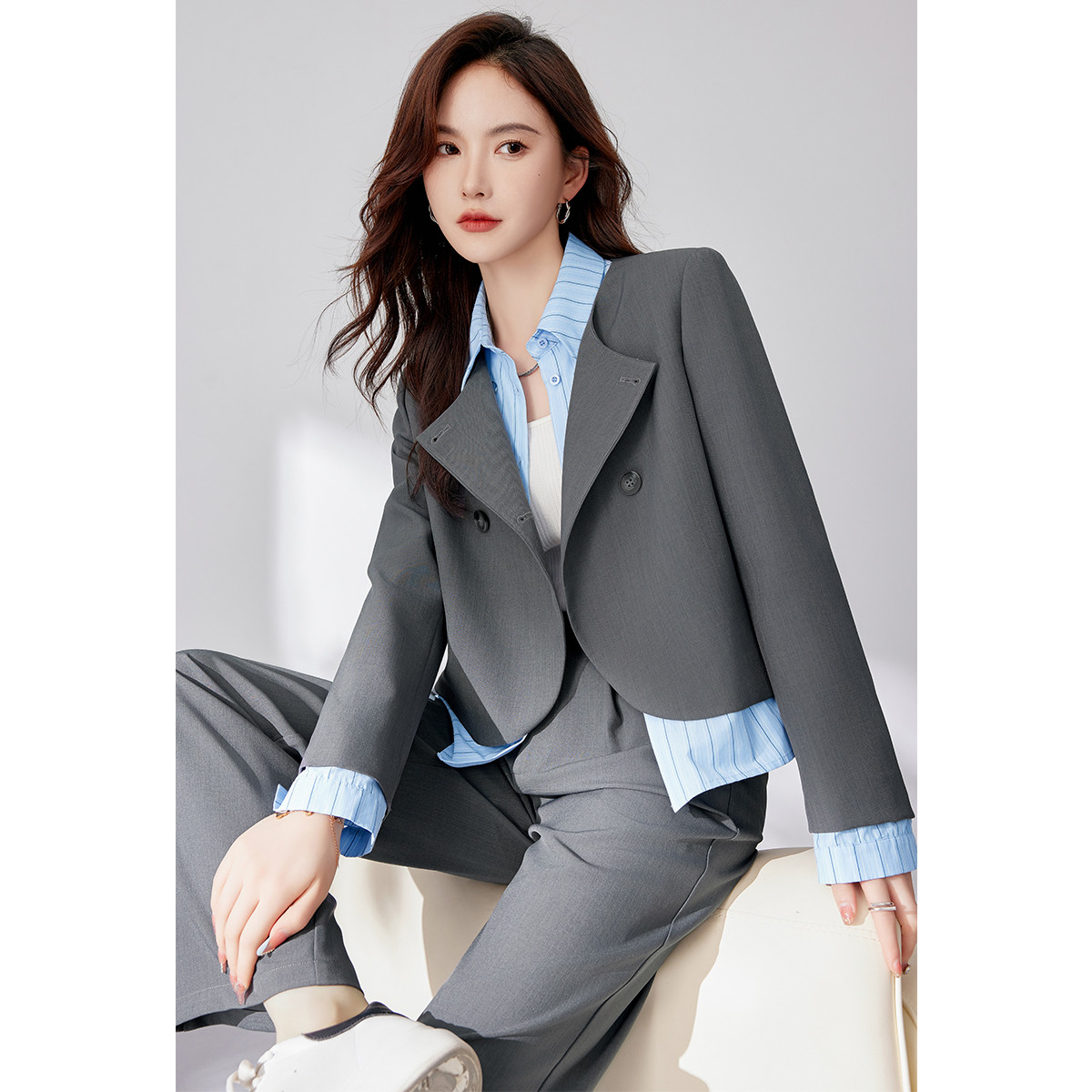 【初春轻熟高级感穿搭】设计感小众时尚显瘦小个子女式套装 516056