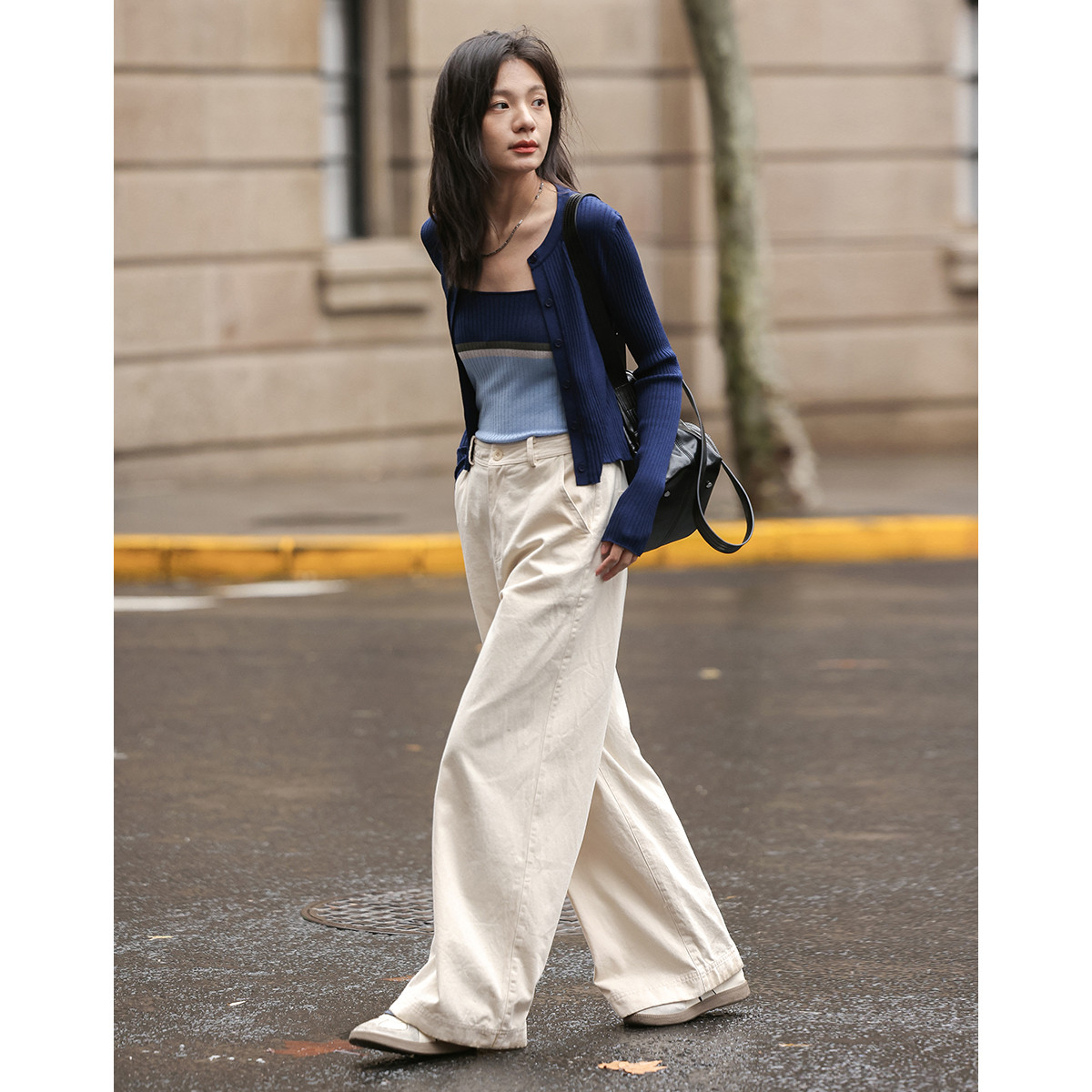 【海盐蓝针织套装】秋款气质撞色针织吊带+长袖针织衫女 478914