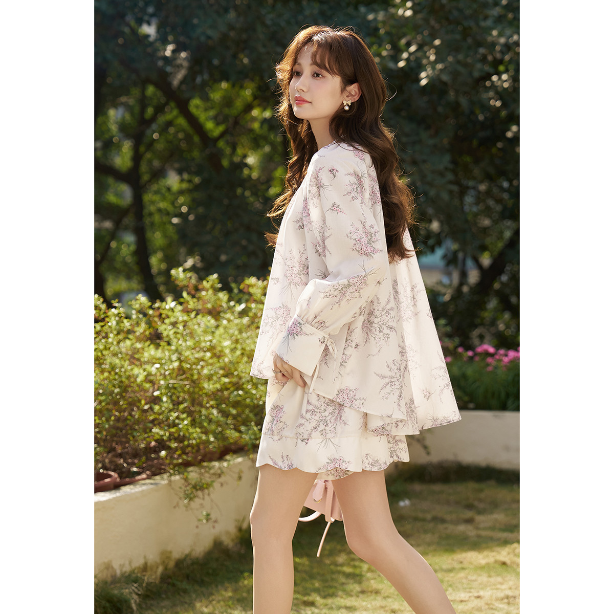 【复古印花套装】春秋氛围感小衫短裤两件套长袖优雅度假风套装女 041473