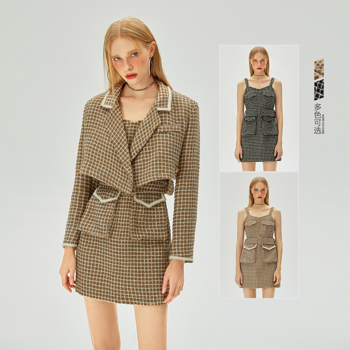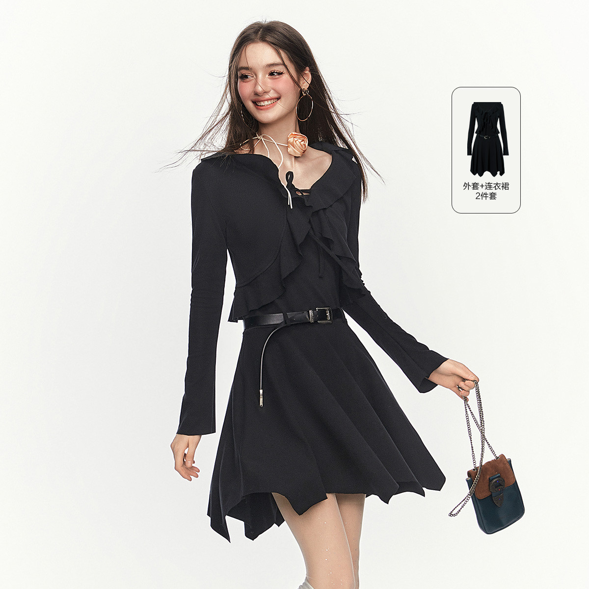 【加送腰带】法式复古小香风连衣裙套装小众短上衣两件套 203668