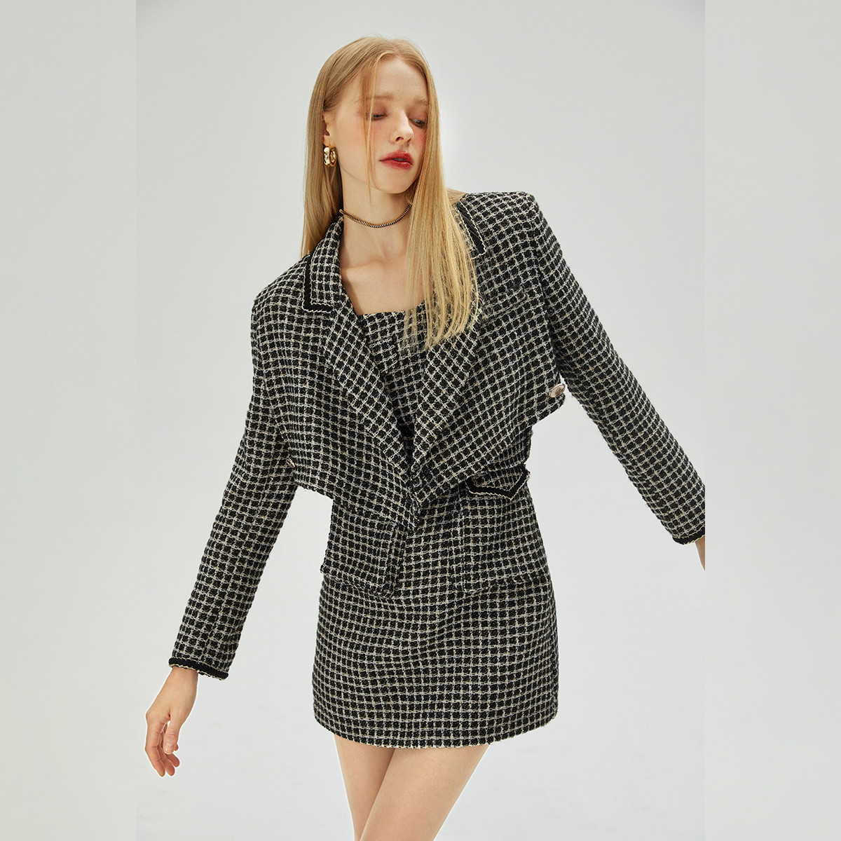【加送腰带】法式复古小香风连衣裙套装小众短上衣两件套 336340