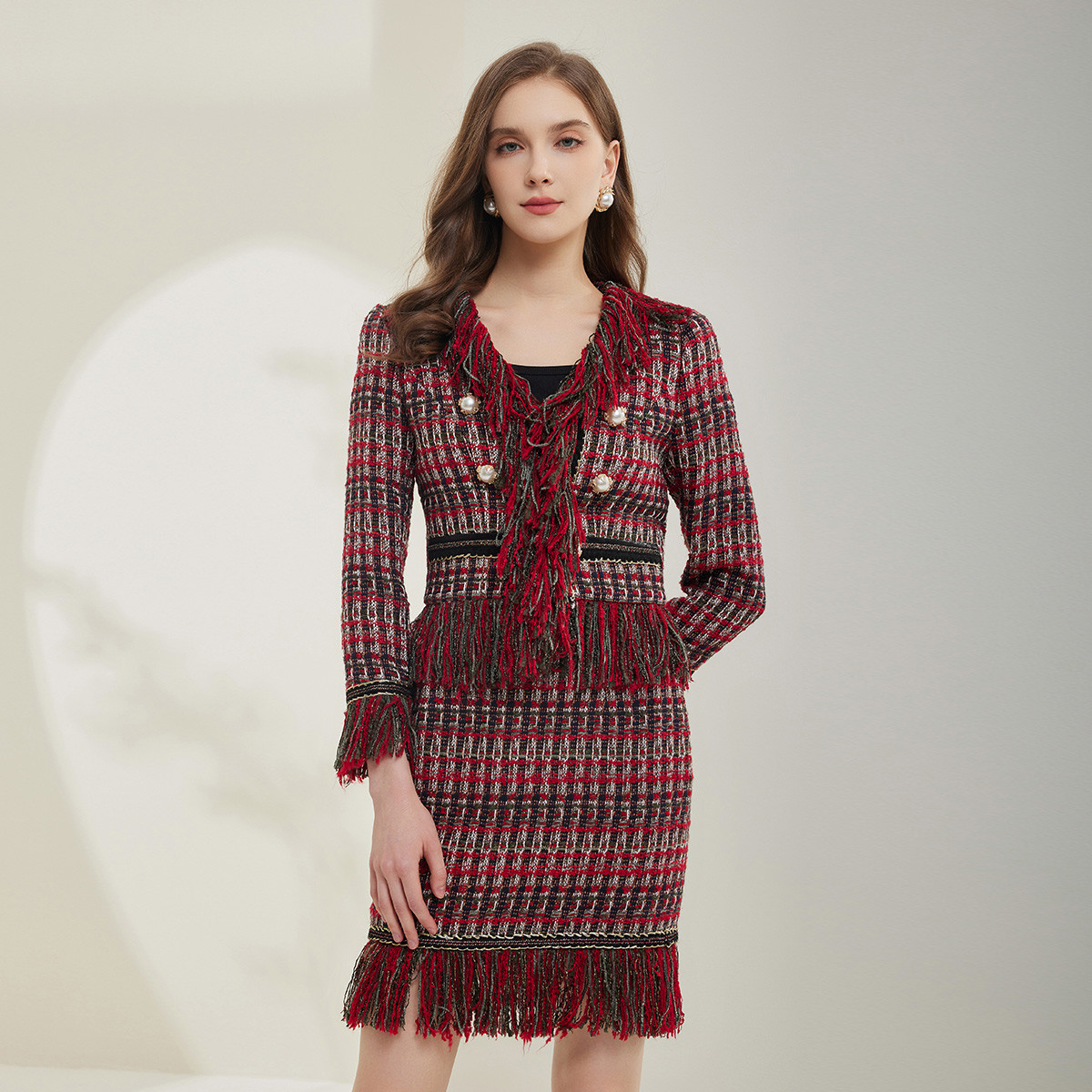 [开衫+半裙套装]商场同款秋季毛线流苏短开衫女式套装 551391