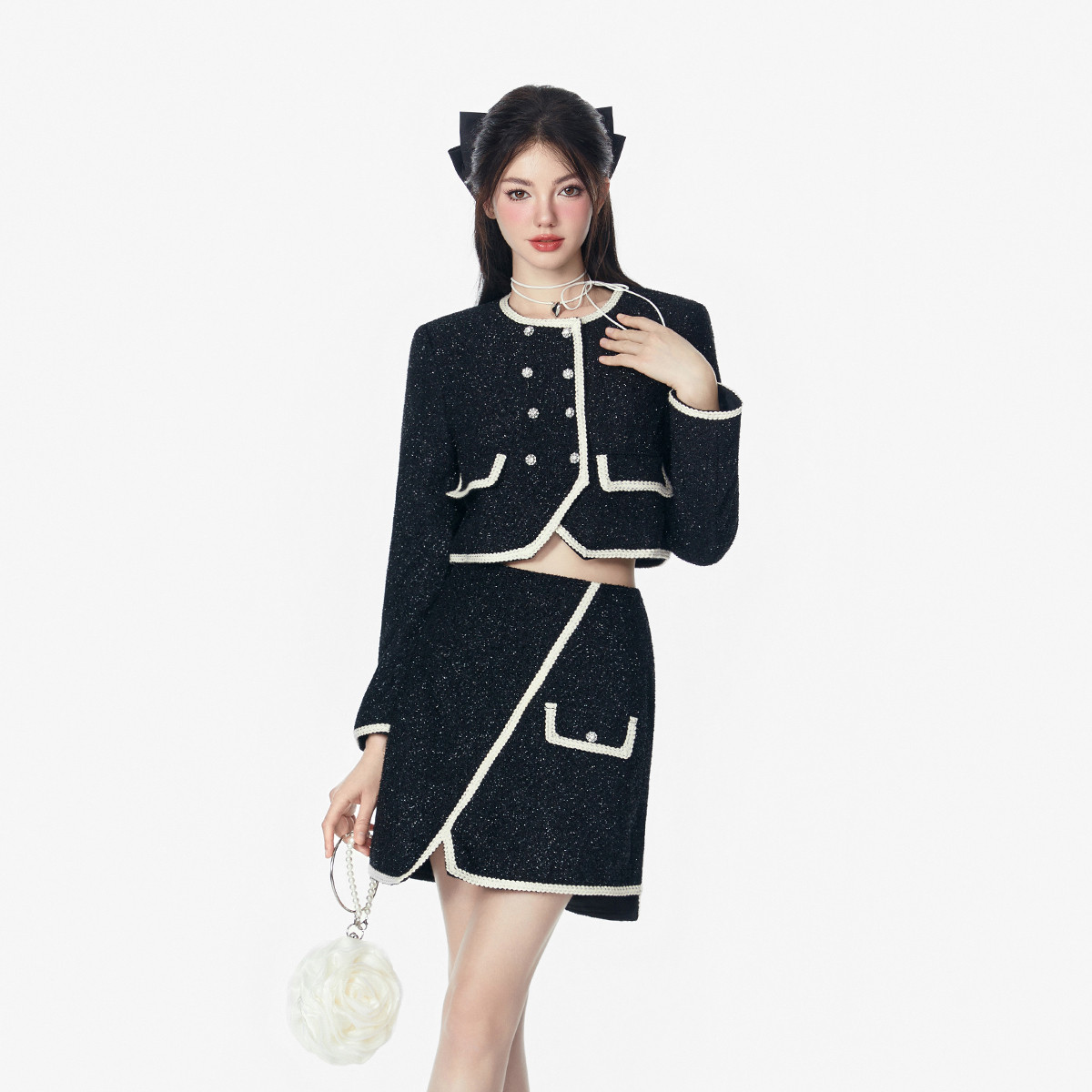 【两件套】24秋季撞色小香风外套+短裙套装女长袖设计感高级 631956