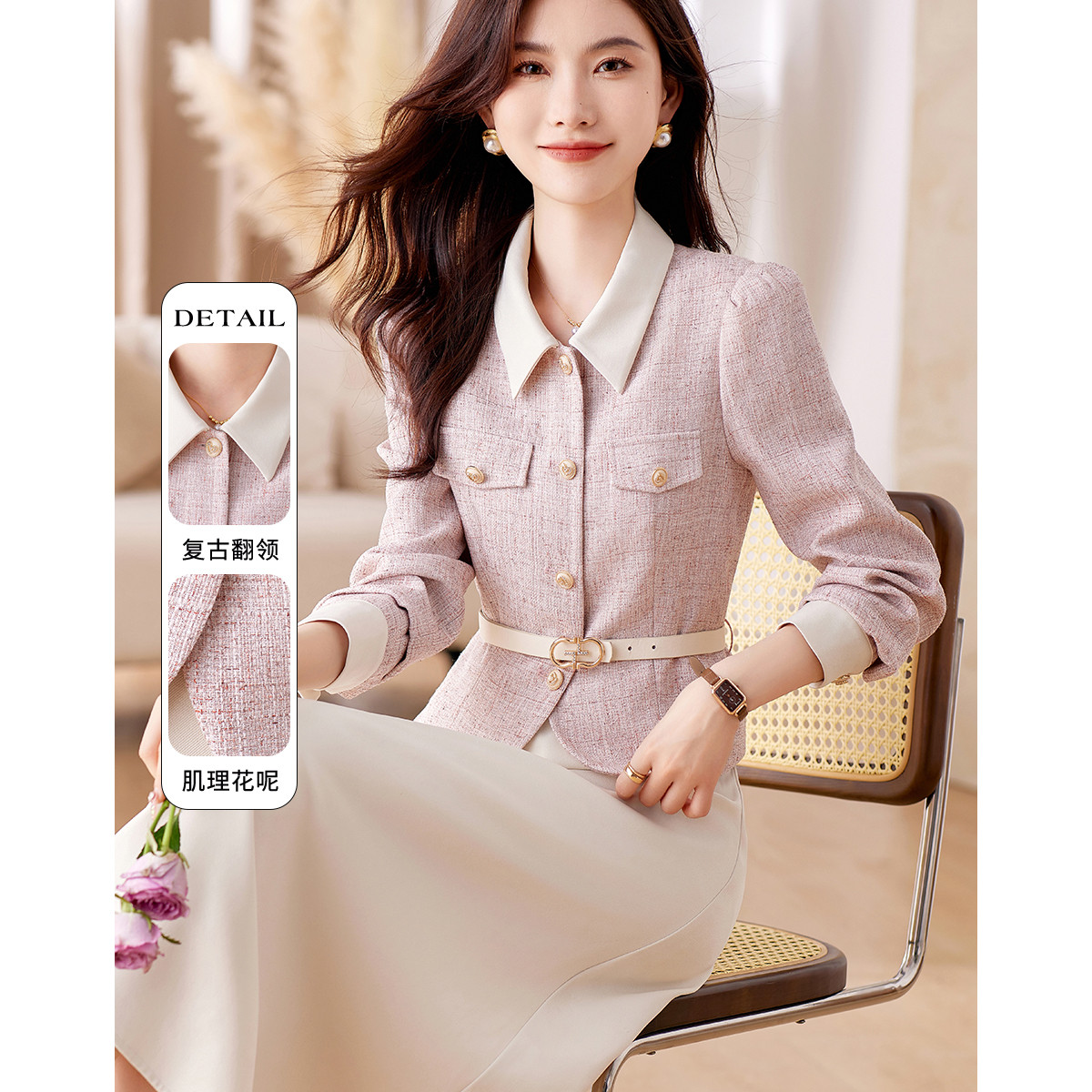 【秋装两件套】春秋小香风设计感甜美气质半裙套装女通勤外套上衣 046868
