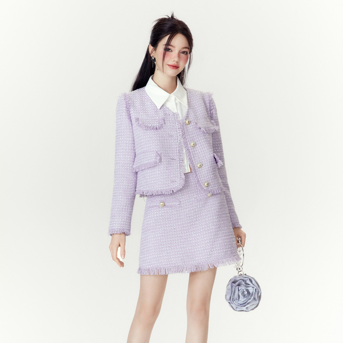 【两件套】2024秋季千金小香风优雅气质外套+短裙高级感套装 286740
