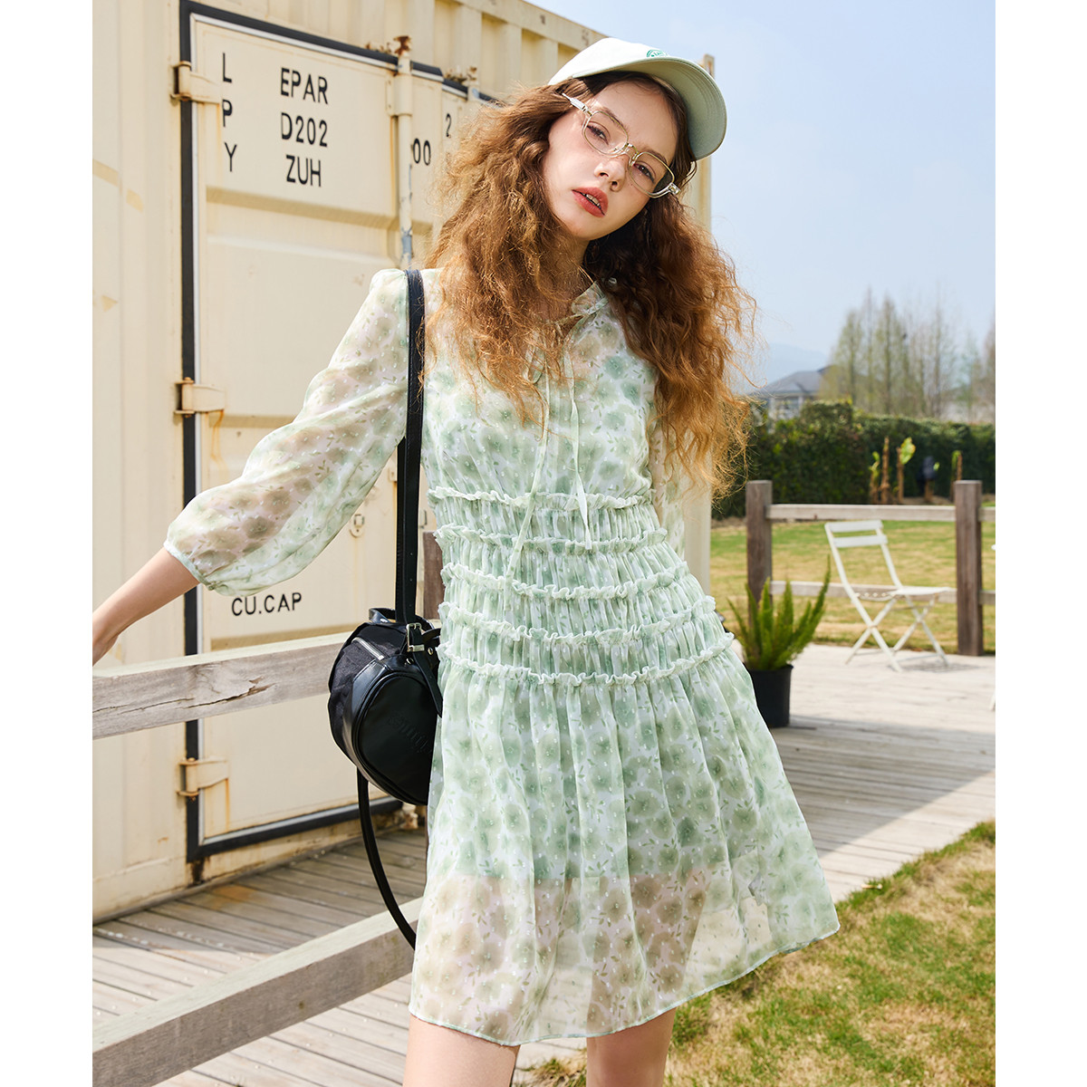 夏季收腰雪纺碎花公主裙气质仙女风女式套装 832989