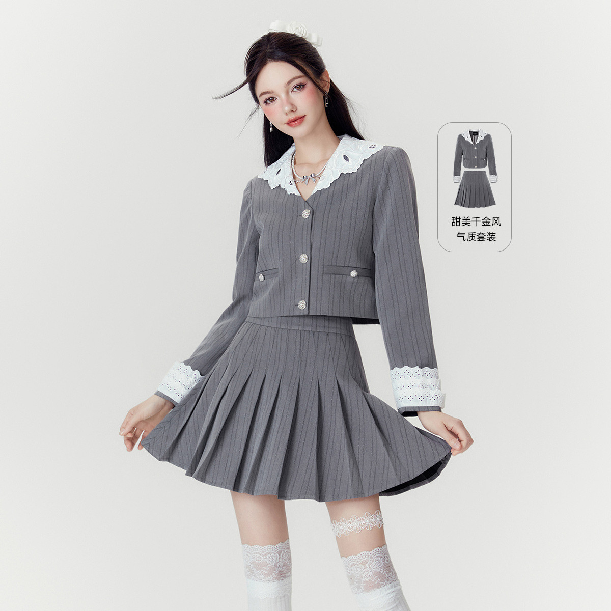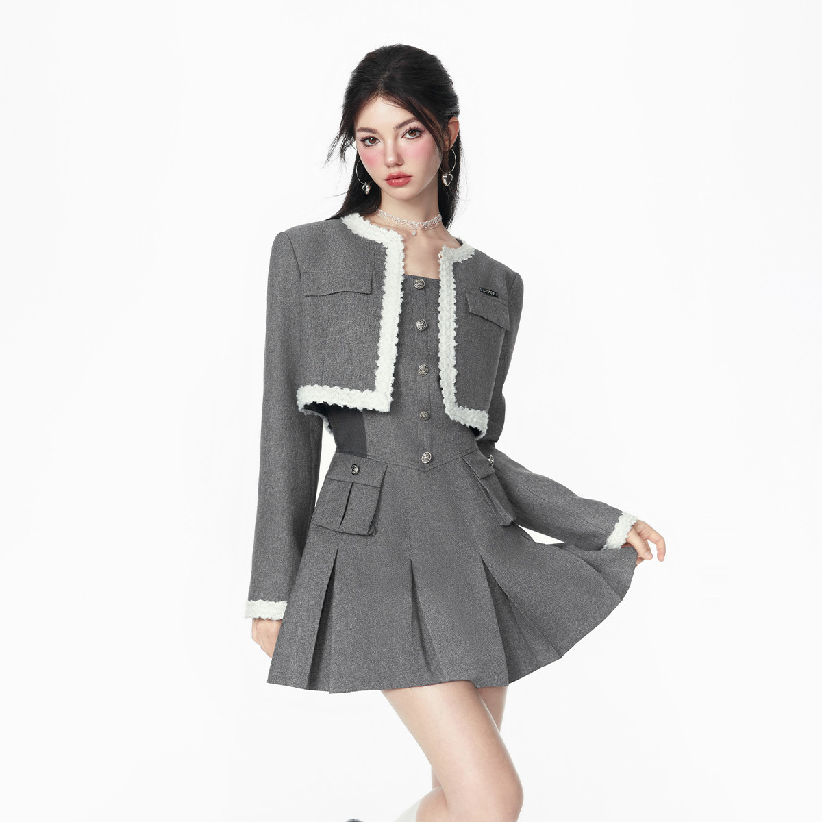 【小香风两件套】秋季热卖千金风设计感外套百褶裙套装女活泼减龄 299796
