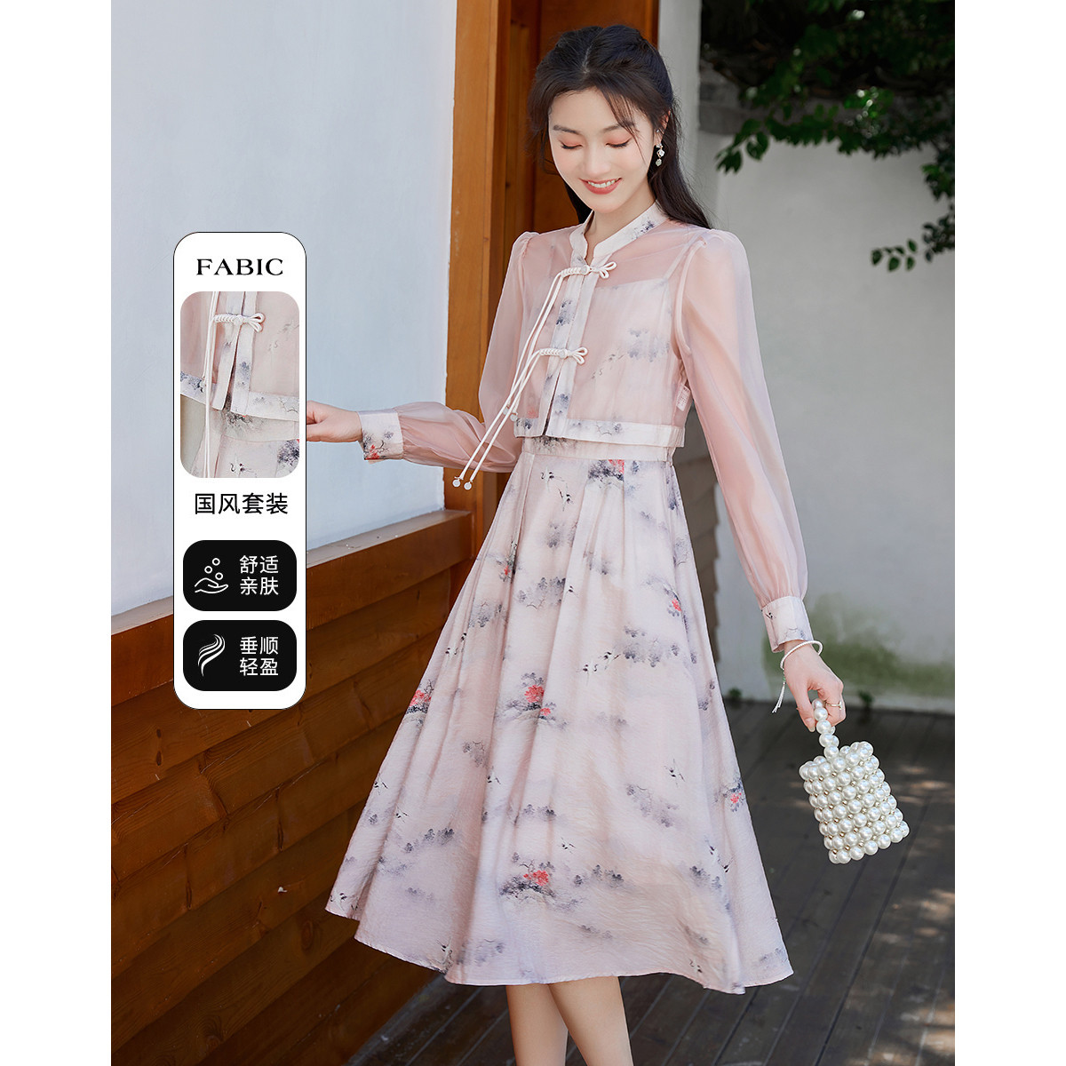 【新中式古风套装】夏季水墨印花优雅气质时尚国风女士套装 045185