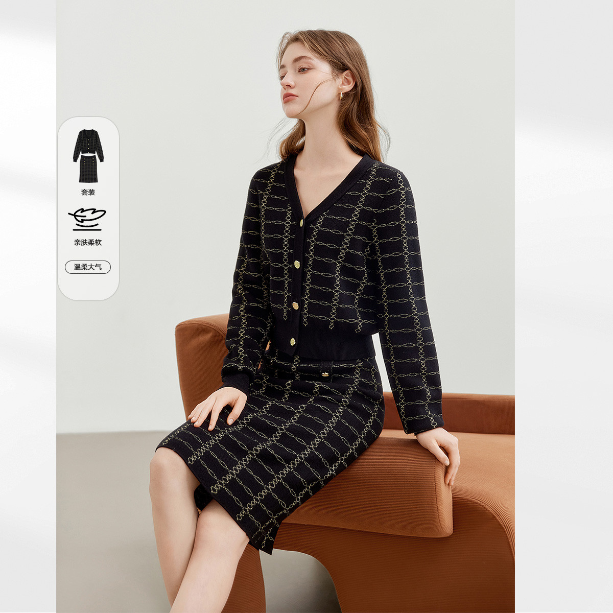 针织小香风套装女2025春秋新款时尚通勤气质温柔半身裙两件套 043480