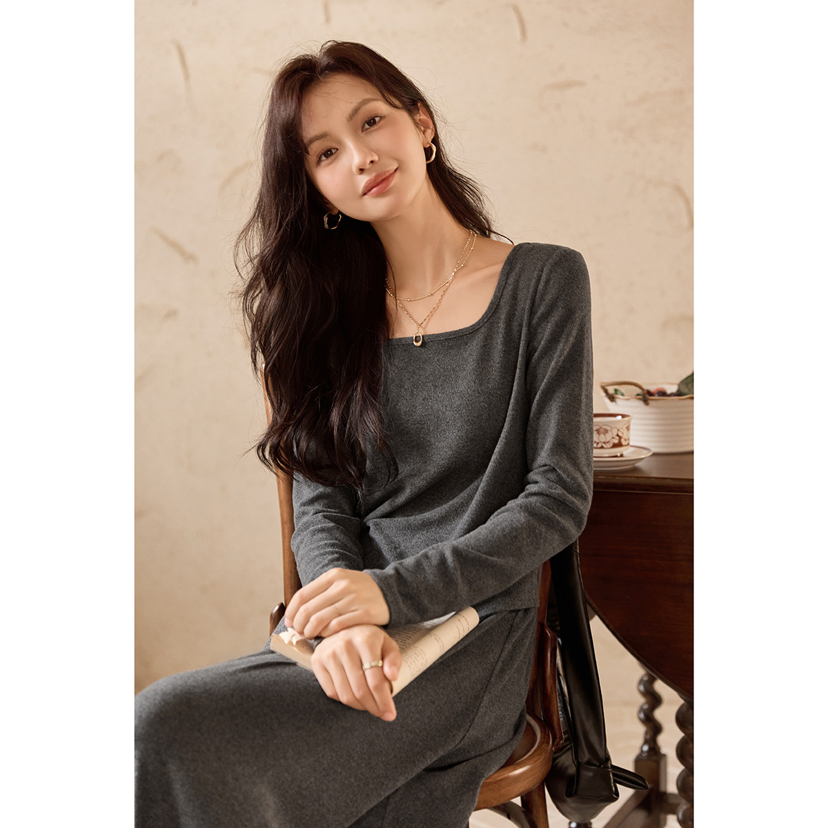 【老钱慵懒风针织套装】秋落肩松弛感上衣U领背心连衣裙两件套女 521153