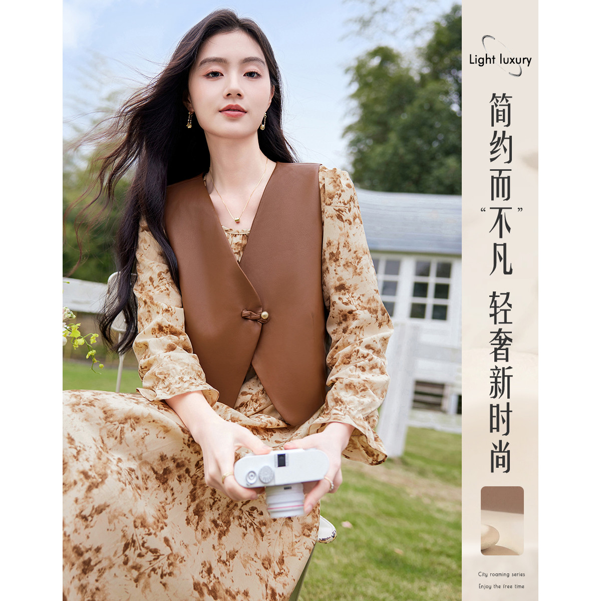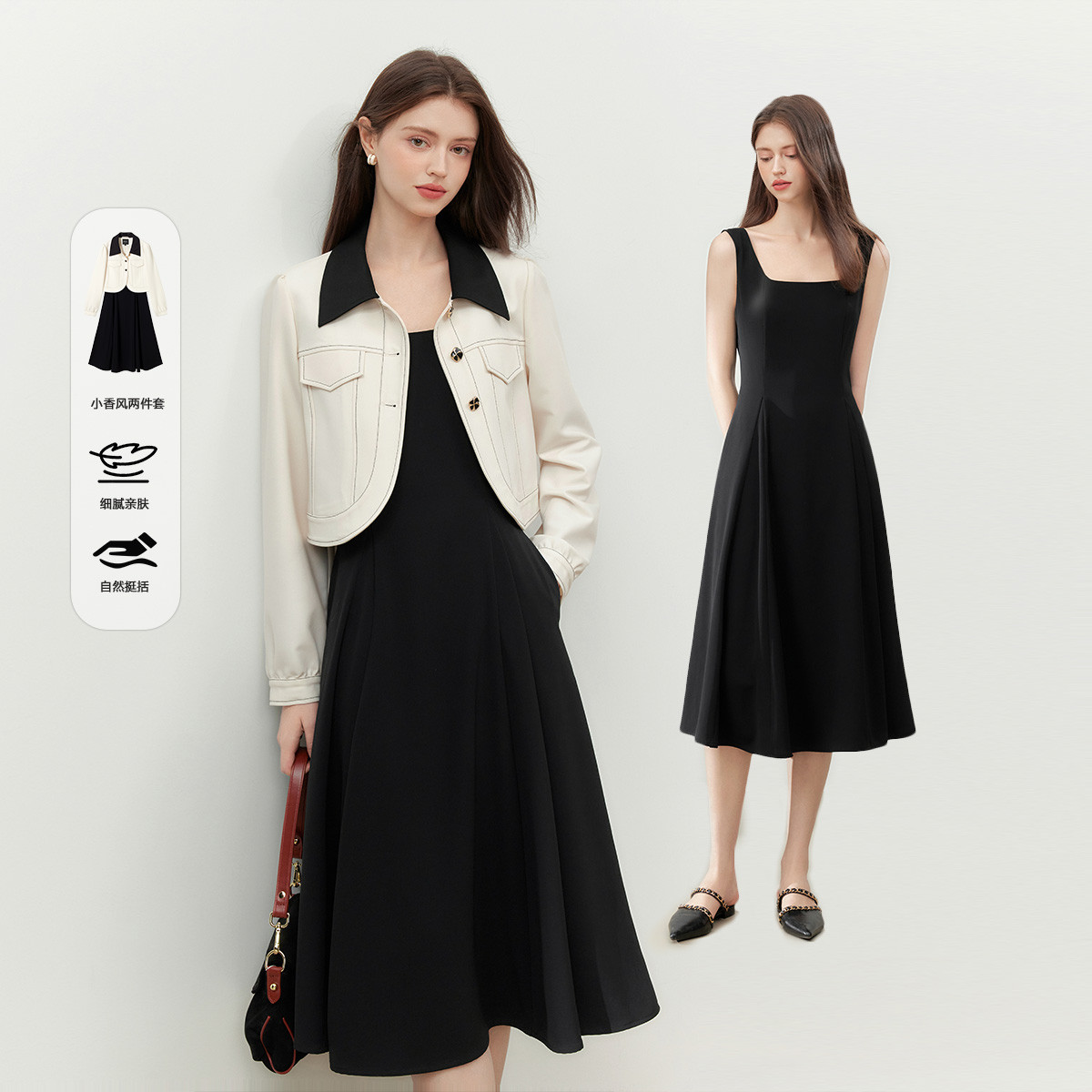 【2024秋季】法式气质两件套装吊带连衣裙+短款拼色外套女 374868