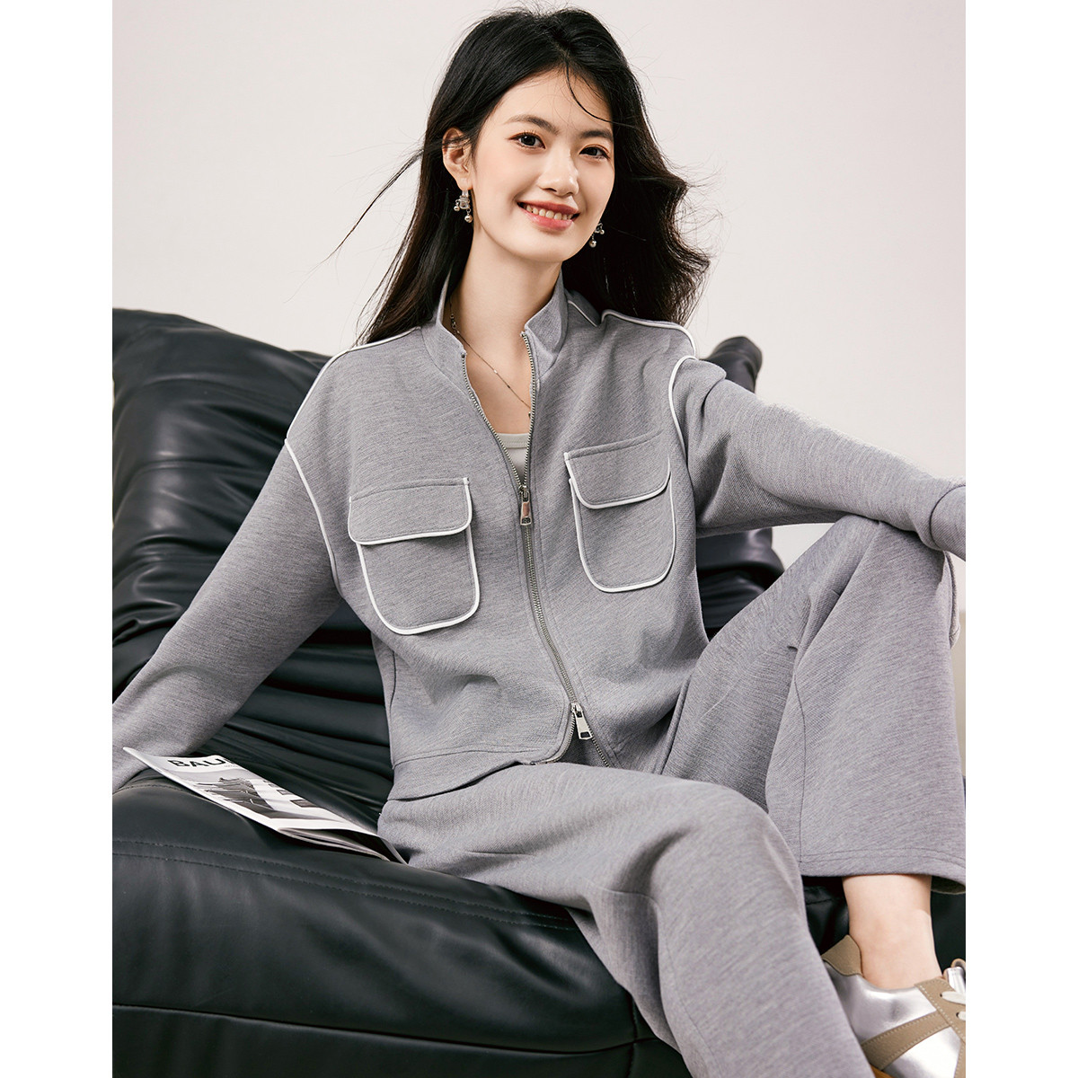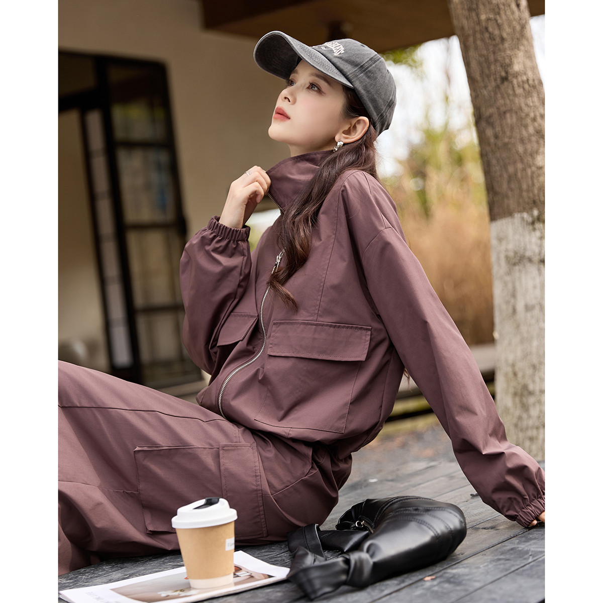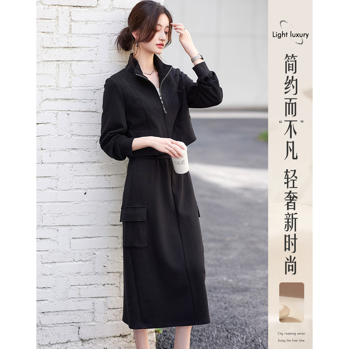 【又A又飒】工装风立领夹克休闲半裙两件套后开叉修身女式套装 189953