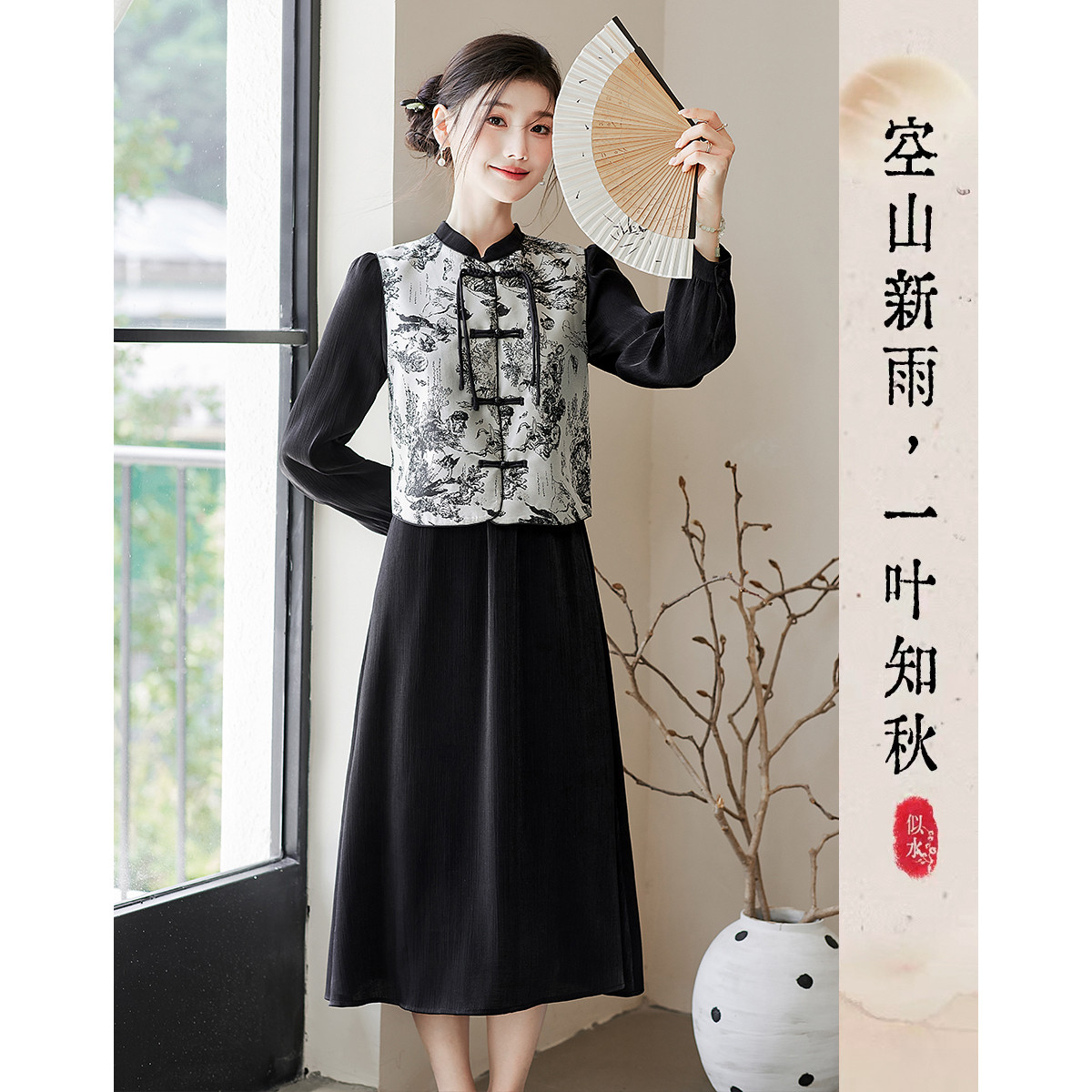 【墨光悬月】春高级感轻奢改良水墨画设计感显瘦小个子套装 345048