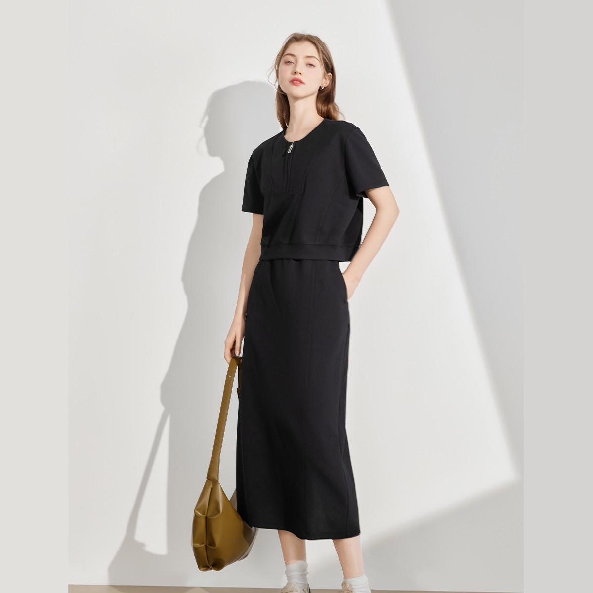 2024夏季休闲运动简约上衣开叉半身裙两件套女短袖T恤套装 651668