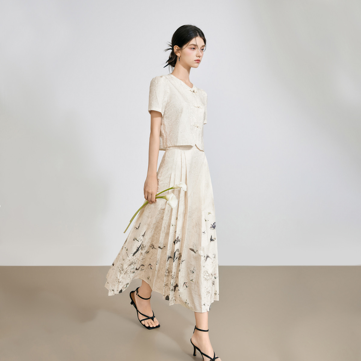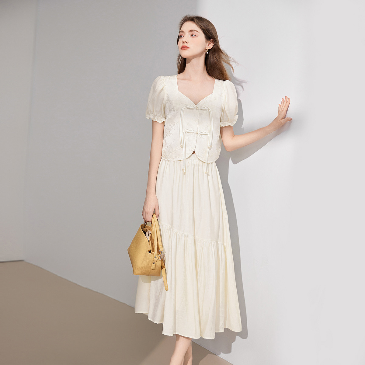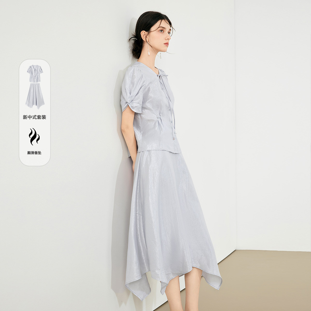 【新中式国风】夏季热卖半身裙短裙两件套女盘扣衬衫上衣套装 745300