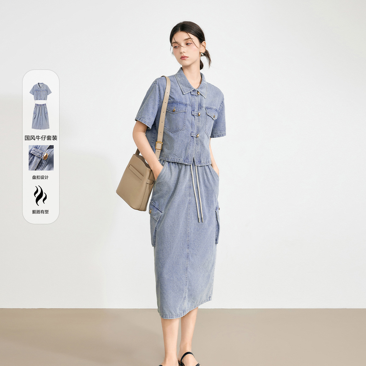 【2024夏季】新中式时尚牛仔上衣套装女松紧腰半身裙两件套 722324
