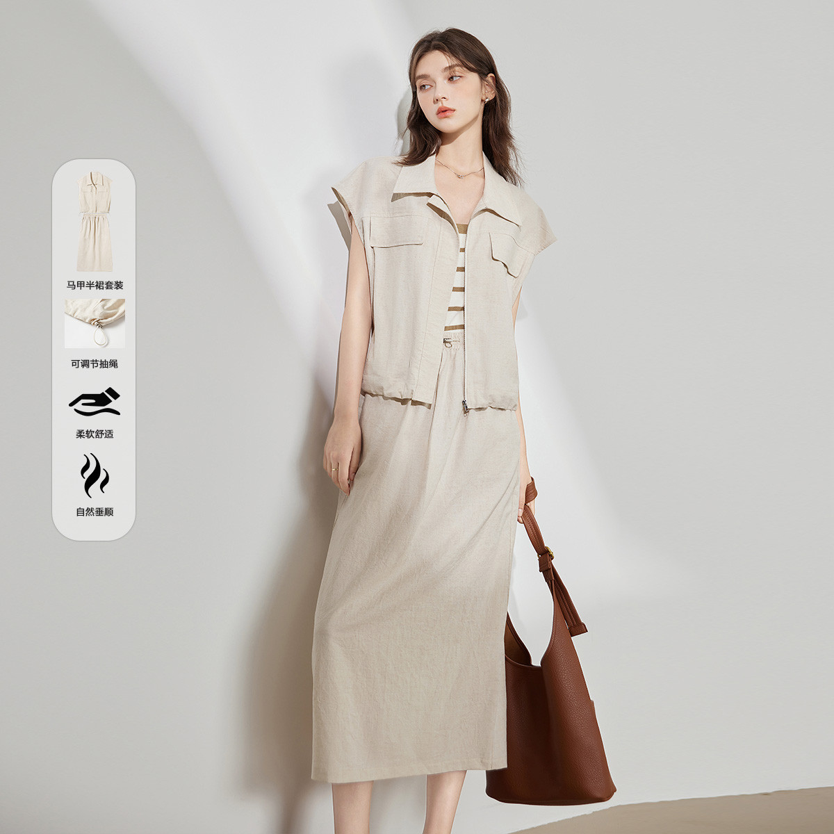 套装女夏简约时尚宽松显瘦无袖抽绳上衣不规则套装裙 599832
